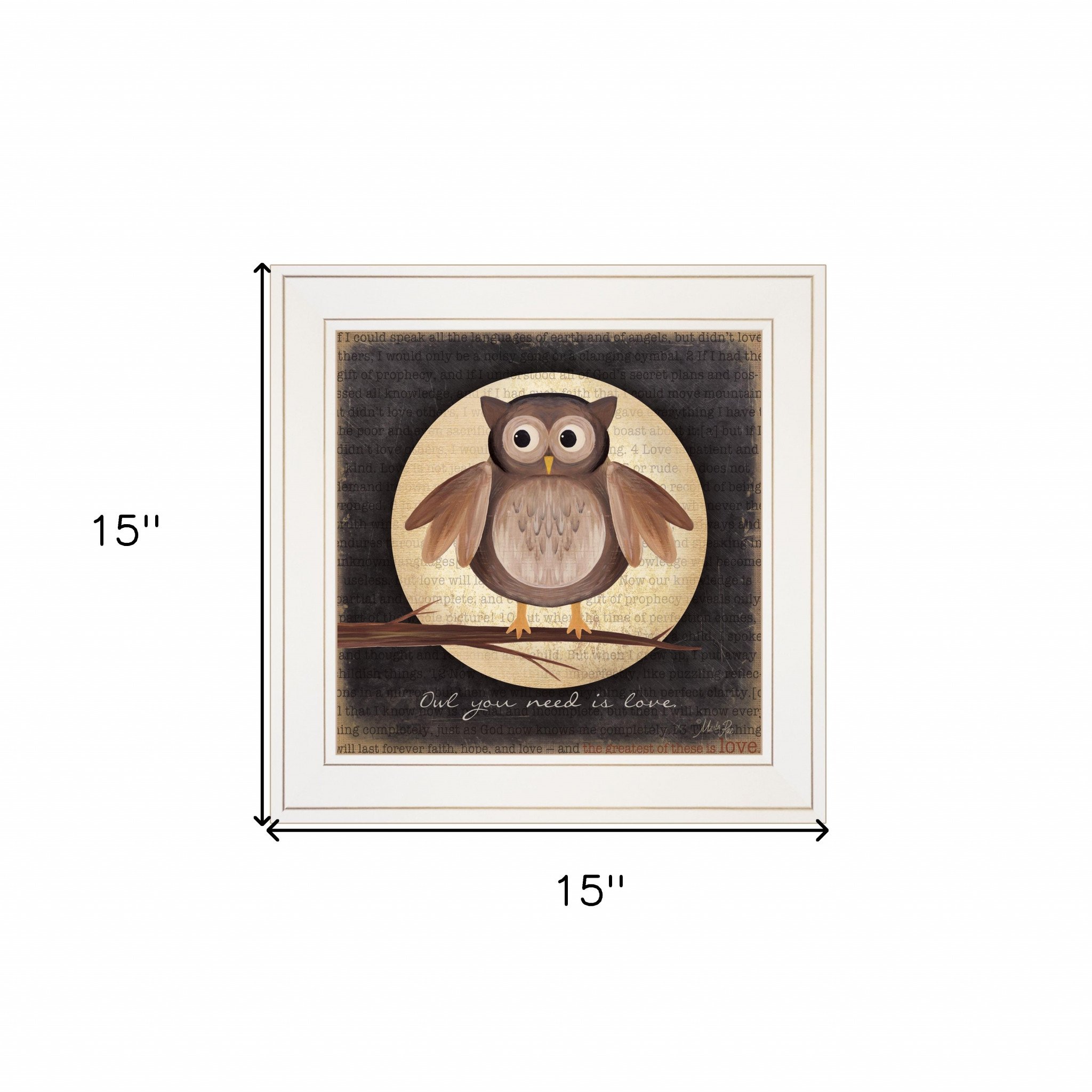 This owl you need is love 1 white framed print wall art will add a beautiful decorative accent to your decor. Update your walls with this woodland animal decor. This print is a visual artistic expression that allows you to decorate your space in style. Reproduced for you on paper, this hanging decorative accent will be a trendy and fashionable way to dress your walls. Adding this hanging wall art to your space to make your room feel more finished and attractive. Instantly liven up your space with this art that brings color and dimension to your walls. 15-inch H x 15-inch W x 1-inch D