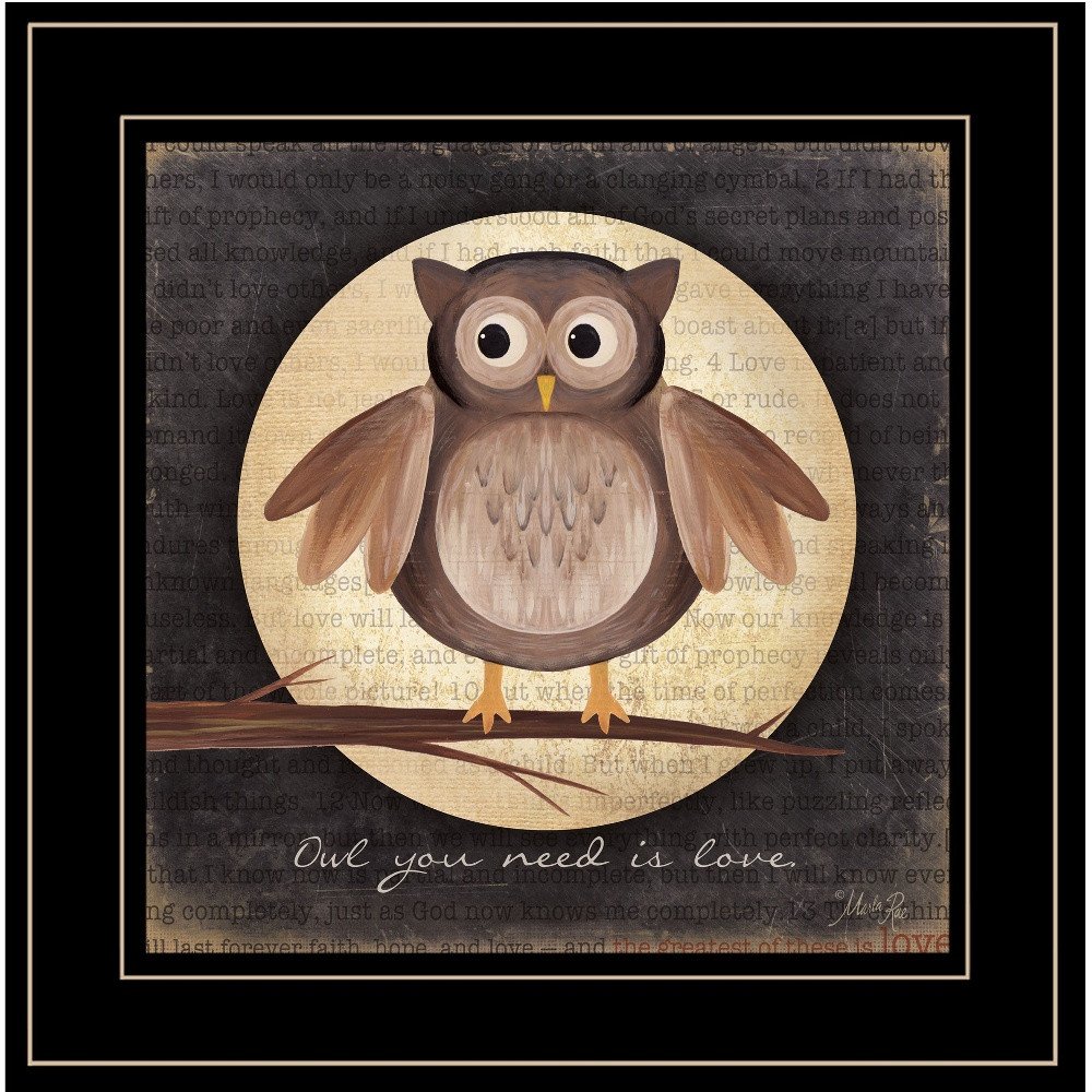 Bring some sizzle to your space with this eye-catching owl you need is love 2 black framed print wall art. Add a sense of the woods, mountain or lodge lifestyle to your walls with this outdoorsy owl wall art. This print is a visual artistic expression that allows you to decorate your space in style. Reproduced for you on paper, this hanging decorative accent will be a trendy and fashionable way to dress your walls. Adding this hanging wall art to your space to make your room feel more finished and attractive. Utilize this opportunity to create a focal point in the room with this fabulous wall decor option. 15-inch H x 15-inch W x 1-inch D