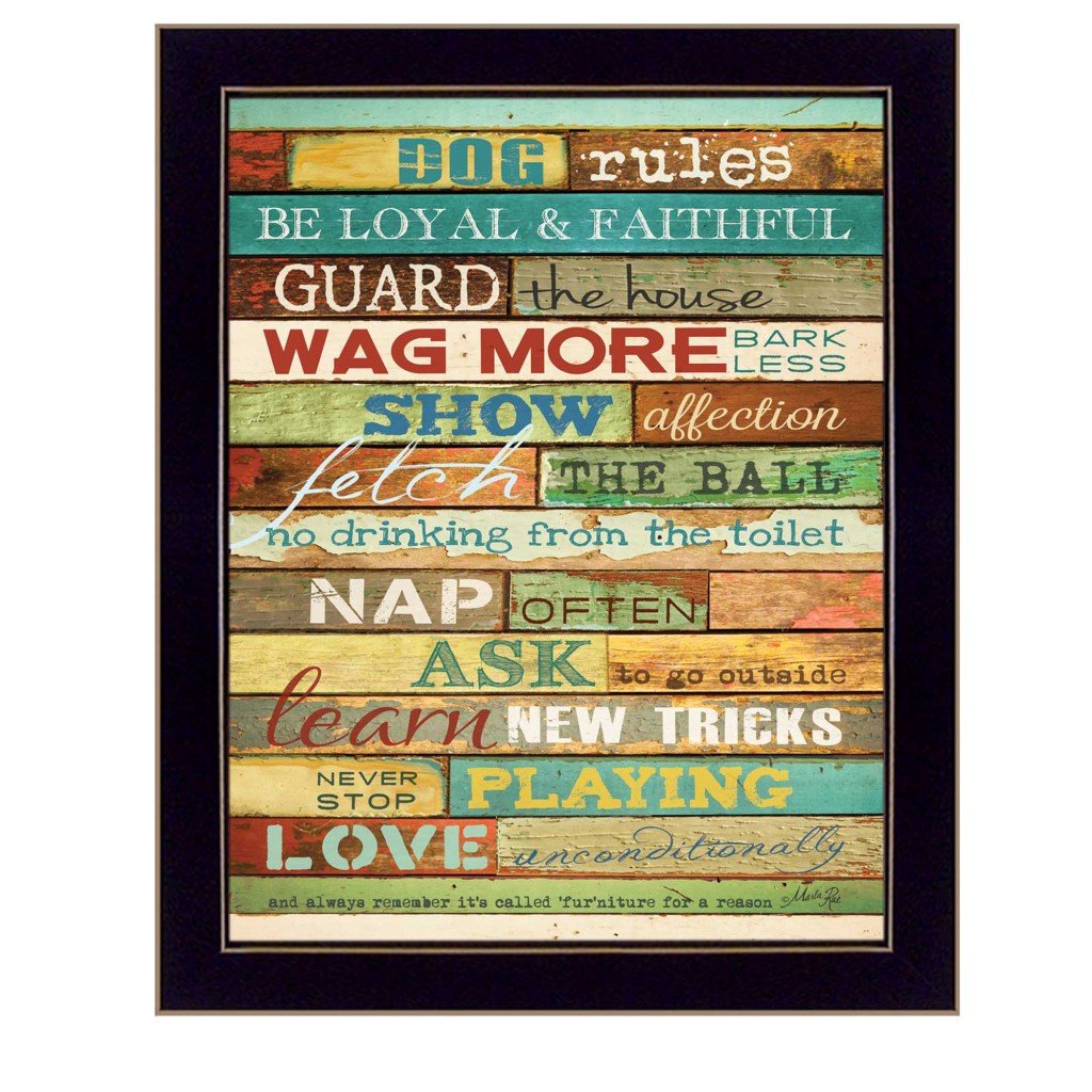Unique and decorative, this dog rules 8 black framed print wall art will leave a lasting impression. This print is a visual artistic expression that allows you to decorate your space in style. Reproduced for you on paper, this hanging decorative accent will be a trendy and fashionable way to dress your walls. Adding this hanging wall art to your space to make your room feel more finished and attractive. Instantly liven up your space with this art that brings color and dimension to your walls. 22-inch H x 18-inch W x 1-inch D