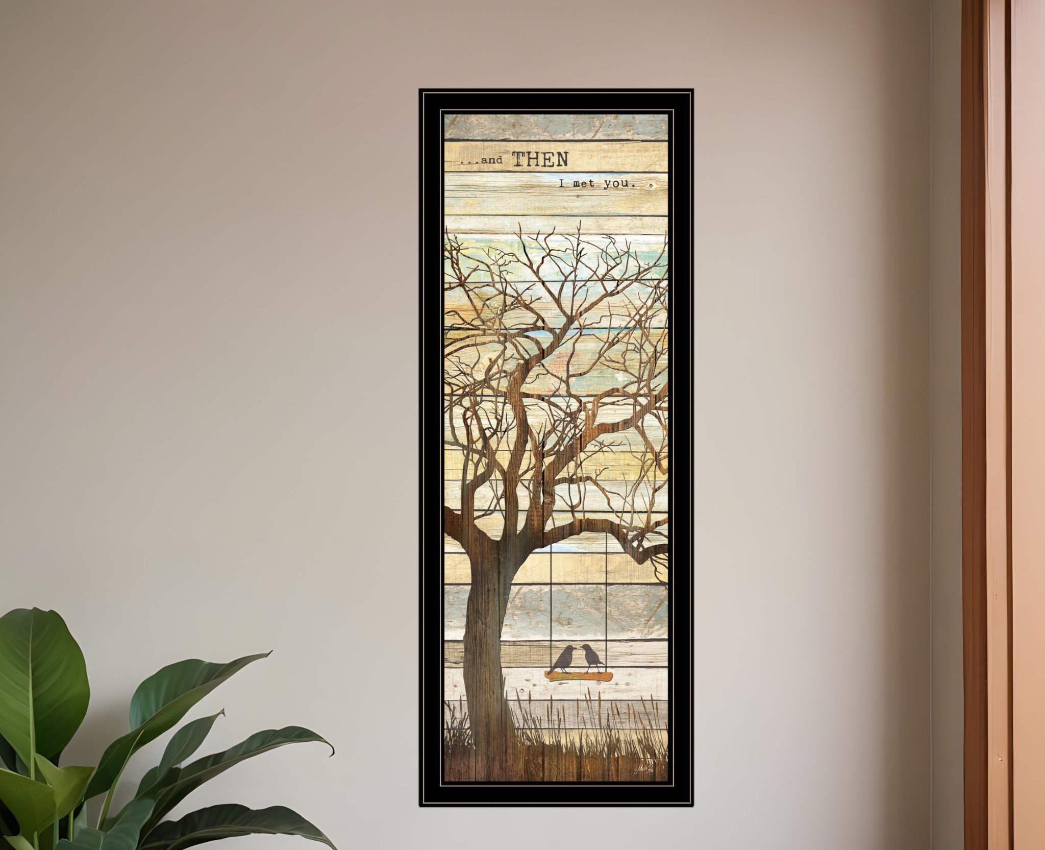Add an air of fashion to your room and rejuvenate the space with this and then i met you 1 black framed print wall art. This print is a visual artistic expression that allows you to decorate your space in style. Reproduced for you on paper, this hanging decorative accent will be a trendy and fashionable way to dress your walls. Hang on your wall to add some up to date fashion and decoration. Instantly liven up your space with this art that brings color and dimension to your walls. 39-inch H x 15-inch W x 1-inch D