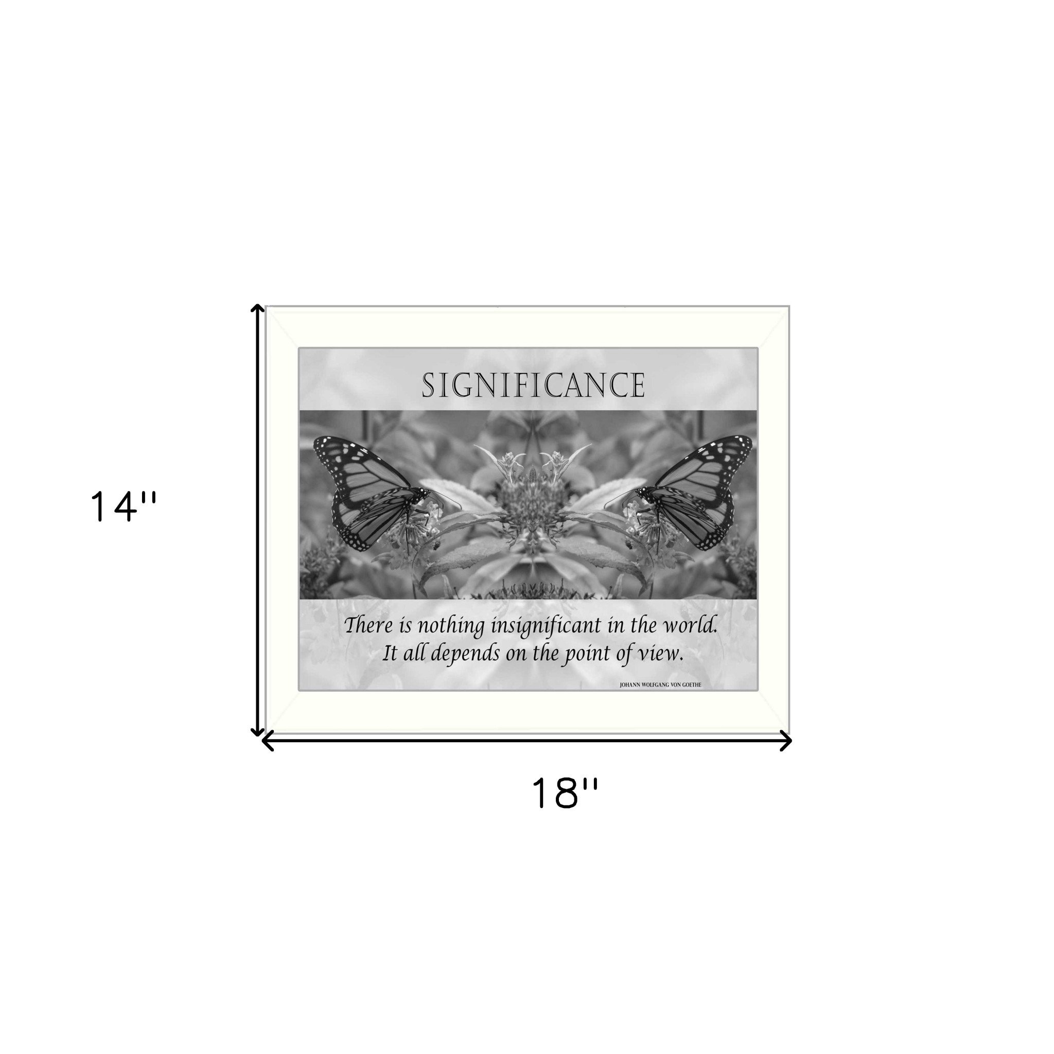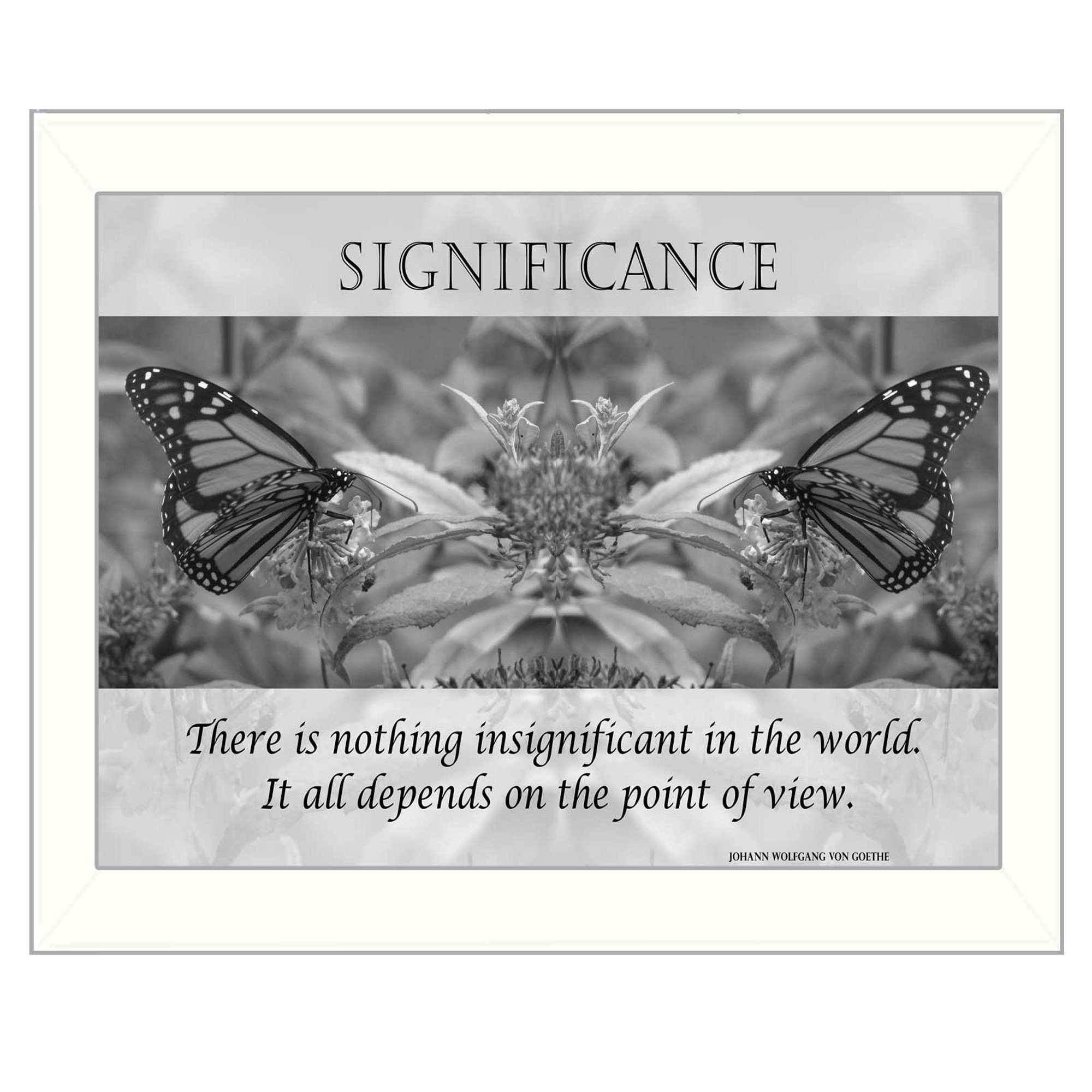 The significance 6 white framed print wall art is the perfect decorative accessory for your home. Inspired by one of nature's most revered icons, this pretty butterfly inspired artwork will be a beautiful and special addition to your room's decor. This print is a visual artistic expression that allows you to decorate your space in style. Reproduced for you on paper, this hanging decorative accent will be a trendy and fashionable way to dress your walls. Hang on your wall to add some up to date fashion and decoration. Utilize this opportunity to create a focal point in the room with this fabulous wall decor option. 18-inch H x 14-inch W x 1.5-inch D
