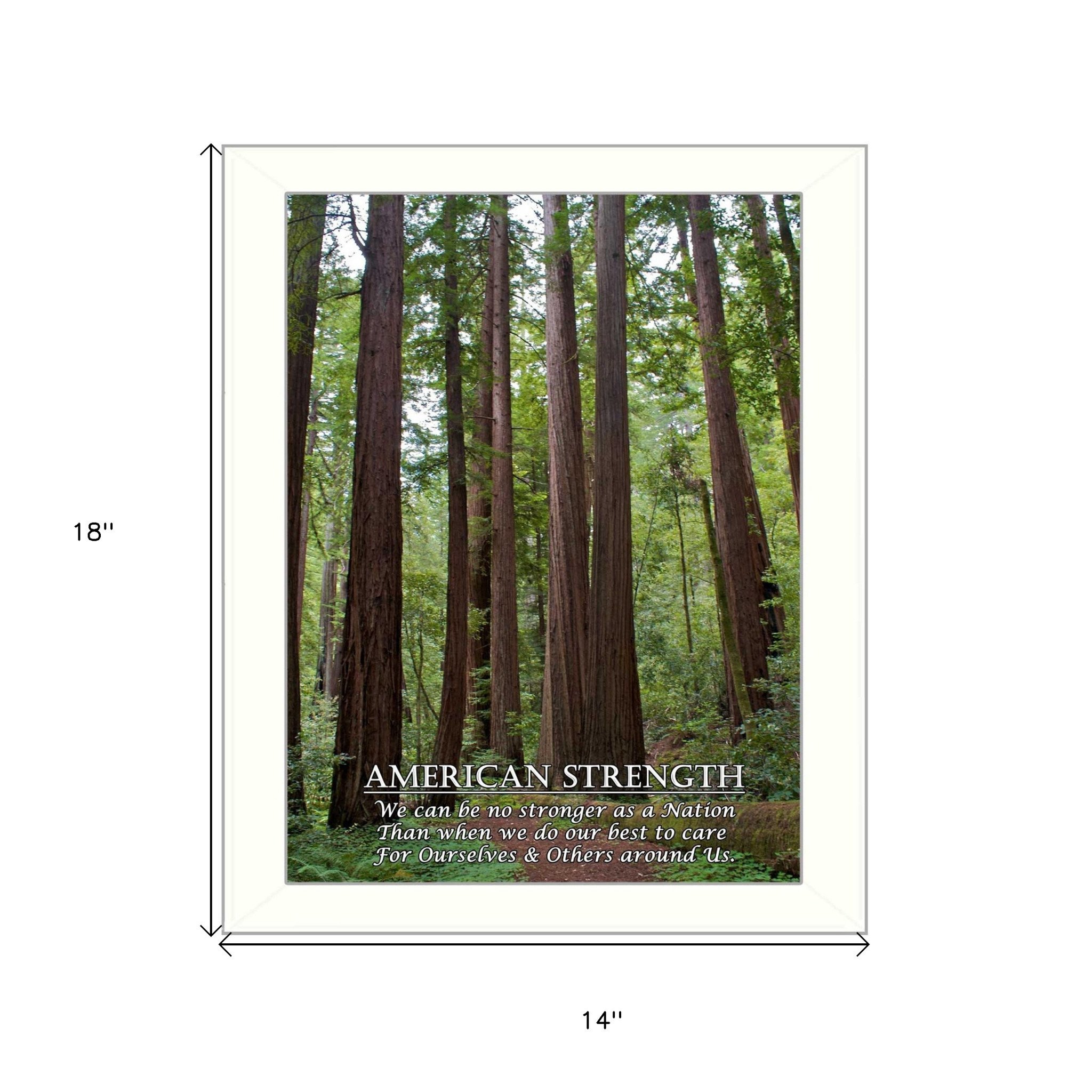 The american strength 4 white framed print wall art is the perfect decorative accessory for your home. This print is a visual artistic expression that allows you to decorate your space in style. Reproduced for you on paper, this hanging decorative accent will be a trendy and fashionable way to dress your walls. Adding this hanging wall art to your space to make your room feel more finished and attractive. Utilize this opportunity to create a focal point in the room with this fabulous wall decor option. 14-inch H x 18-inch W x 1.5-inch D