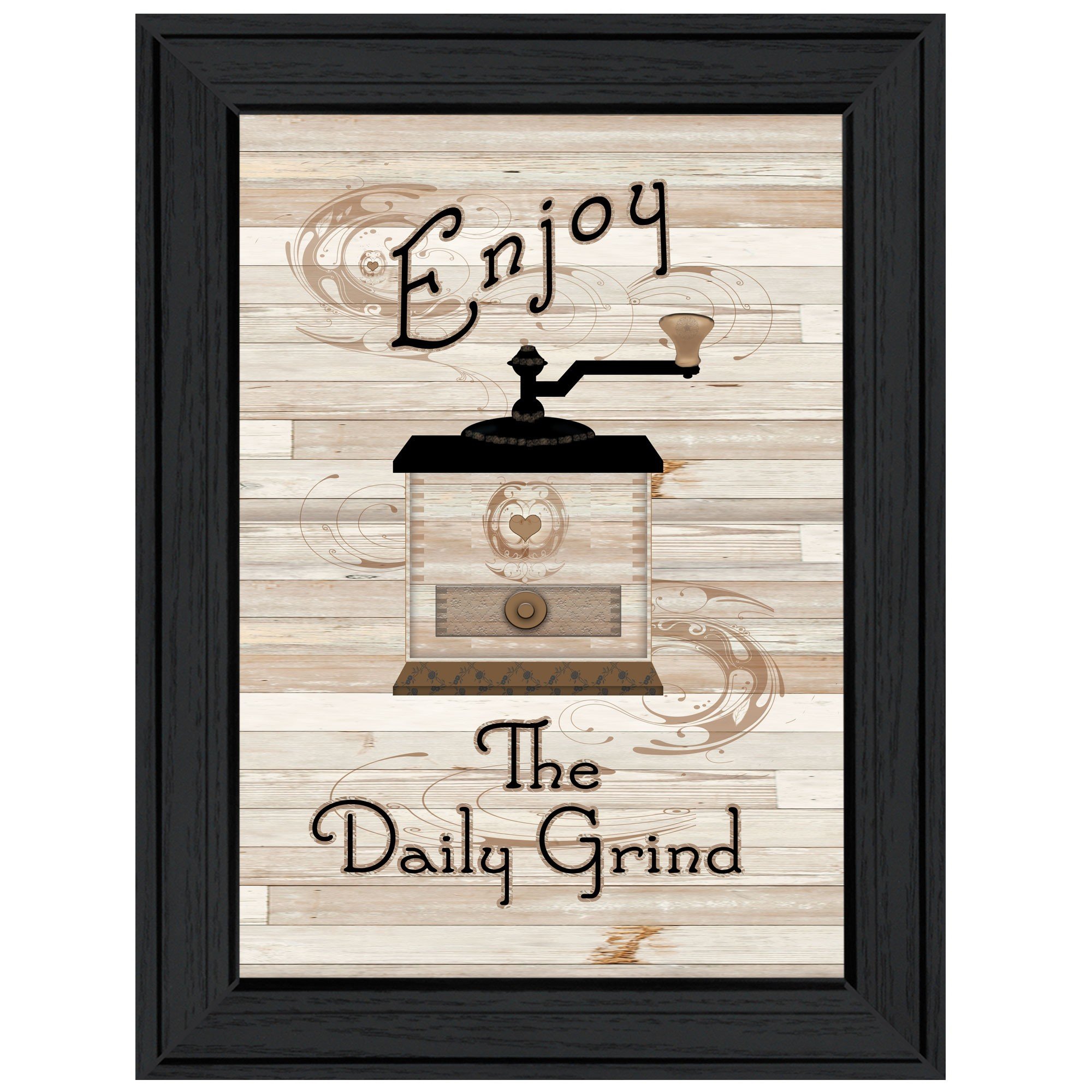 This the daily grind 2 black framed print kitchen wall art will add a beautiful decorative accent to your decor. This print is a visual artistic expression that allows you to decorate your space in style. Reproduced for you on paper, this hanging decorative accent will be a trendy and fashionable way to dress your walls. Adding this hanging wall art to your space to make your room feel more finished and attractive. Instantly liven up your space with this art that brings color and dimension to your walls. 15-inch H x 11-inch W x 1-inch D