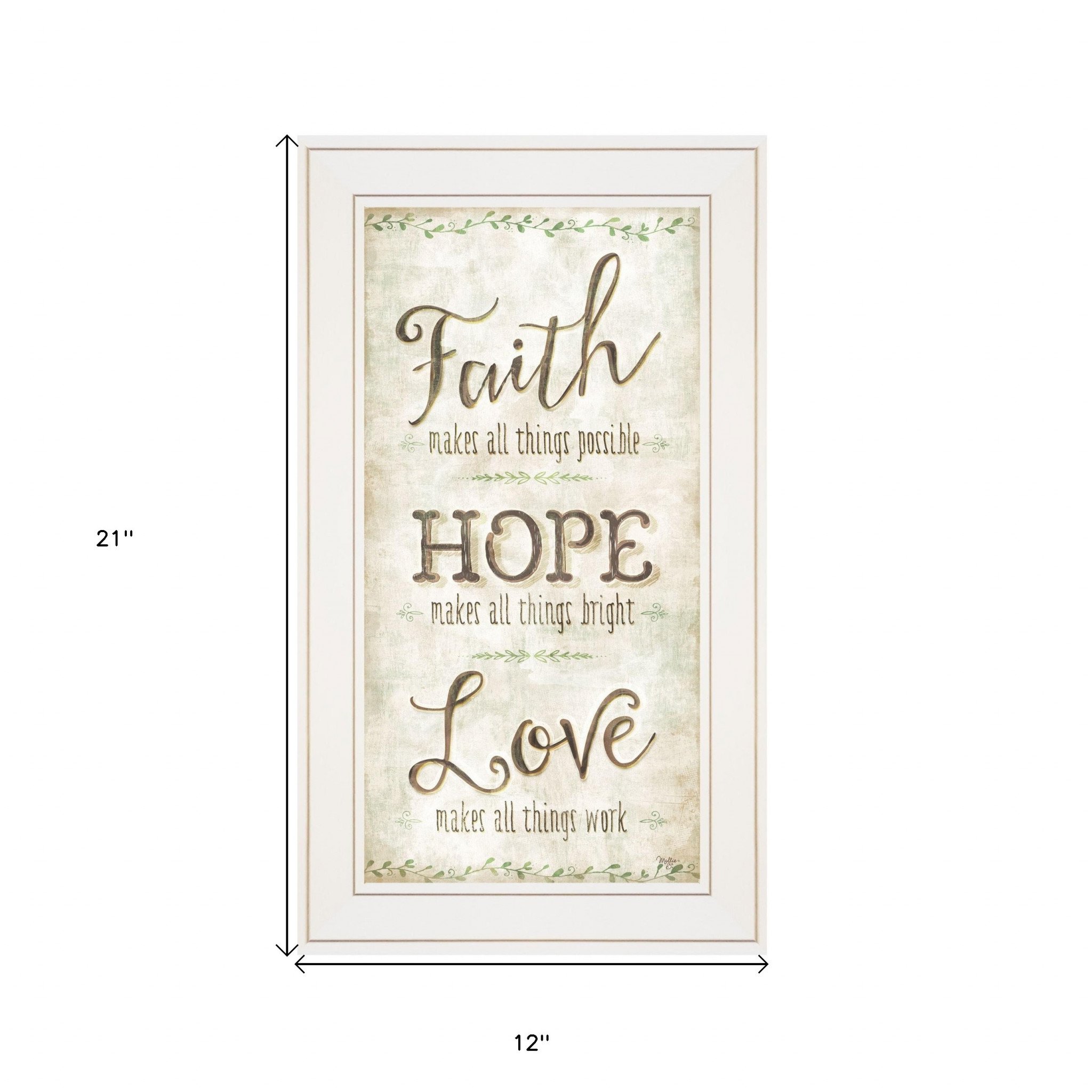 This faith 1 white framed print wall art will add a beautiful decorative accent to your decor. This print is a visual artistic expression that allows you to decorate your space in style. Reproduced for you on paper, this hanging decorative accent will be a trendy and fashionable way to dress your walls. Hang on your wall to add some up to date fashion and decoration. Utilize this opportunity to create a focal point in the room with this fabulous wall decor option. 21-inch H x 12-inch W x 1-inch D