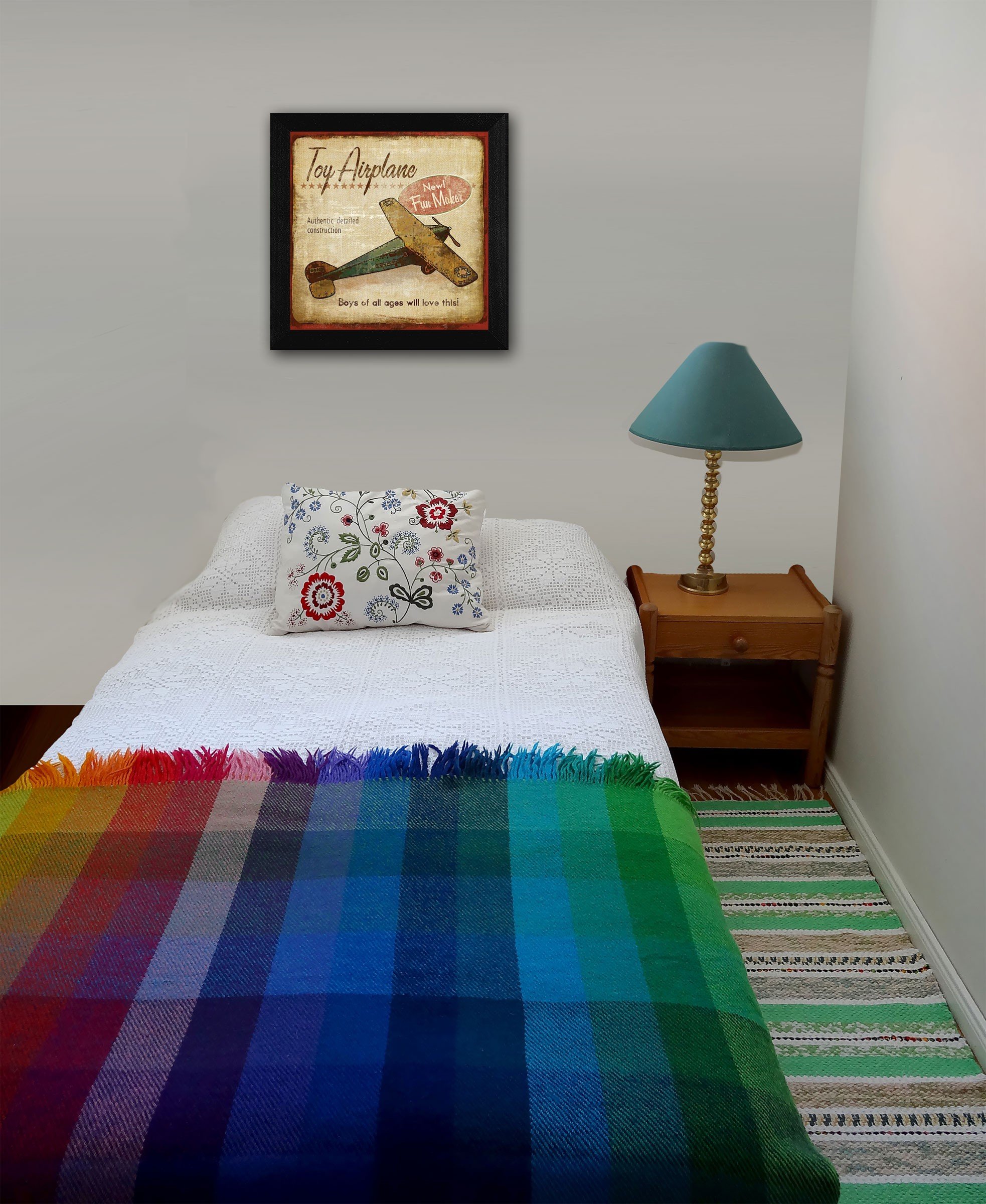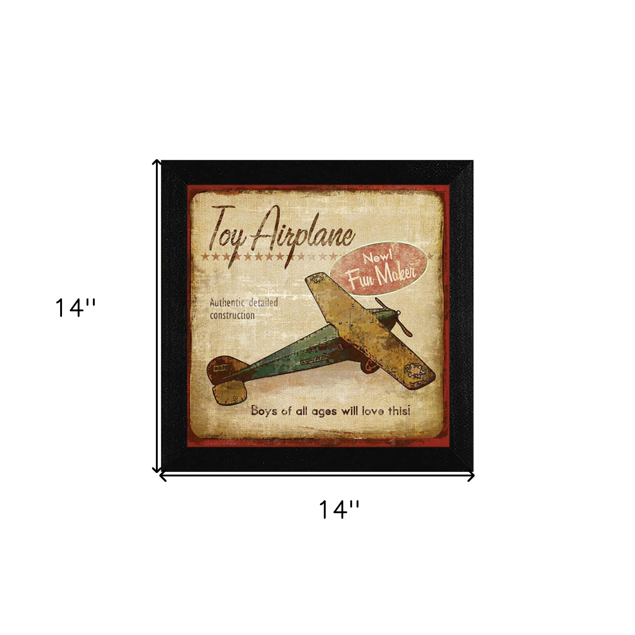 The toy airplane black framed print wall art is the perfect decorative accessory for your home. This transportation inspired wall art features a toy airplane icon and will bring a refreshing look and perspective to your walls. This print is a visual artistic expression that allows you to decorate your space in style. Reproduced for you on paper, this hanging decorative accent will be a trendy and fashionable way to dress your walls. Hang on your wall to add some up to date fashion and decoration. Instantly liven up your space with this art that brings color and dimension to your walls. 14-inch H x 14-inch W x 1-inch D