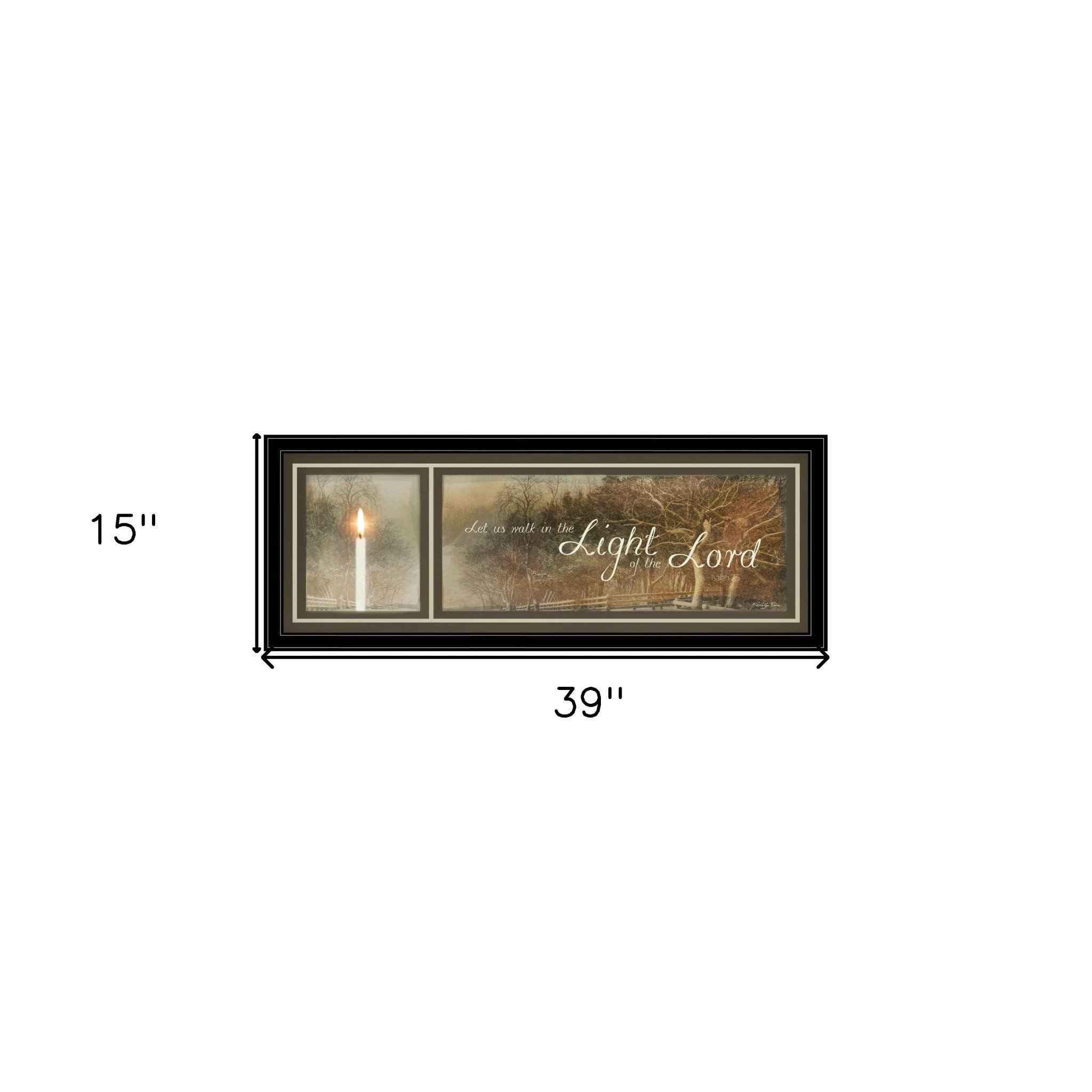 The walk in the light 1 black framed print wall art is the perfect decorative accessory for your home. This print is a visual artistic expression that allows you to decorate your space in style. Reproduced for you on paper, this hanging decorative accent will be a trendy and fashionable way to dress your walls. Adding this hanging wall art to your space to make your room feel more finished and attractive. Instantly liven up your space with this art that brings color and dimension to your walls. 15-inch H x 39-inch W x 1-inch D