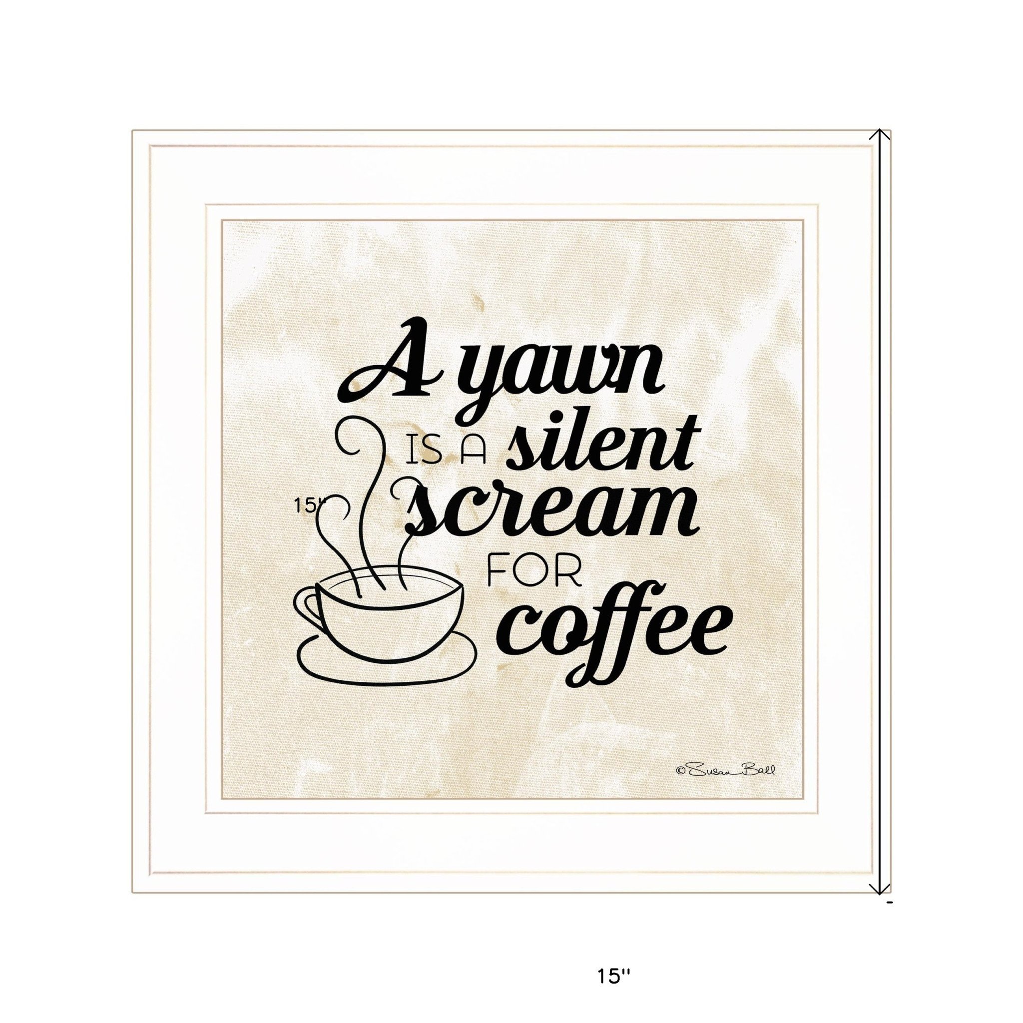 The a silent scream for coffee 1 white framed print wall art is the perfect decorative accessory for your home. This print is a visual artistic expression that allows you to decorate your space in style. Reproduced for you on paper, this hanging decorative accent will be a trendy and fashionable way to dress your walls. Adding this hanging wall art to your space to make your room feel more finished and attractive. Instantly liven up your space with this art that brings color and dimension to your walls. 15-inch H x 15-inch W x 1-inch D