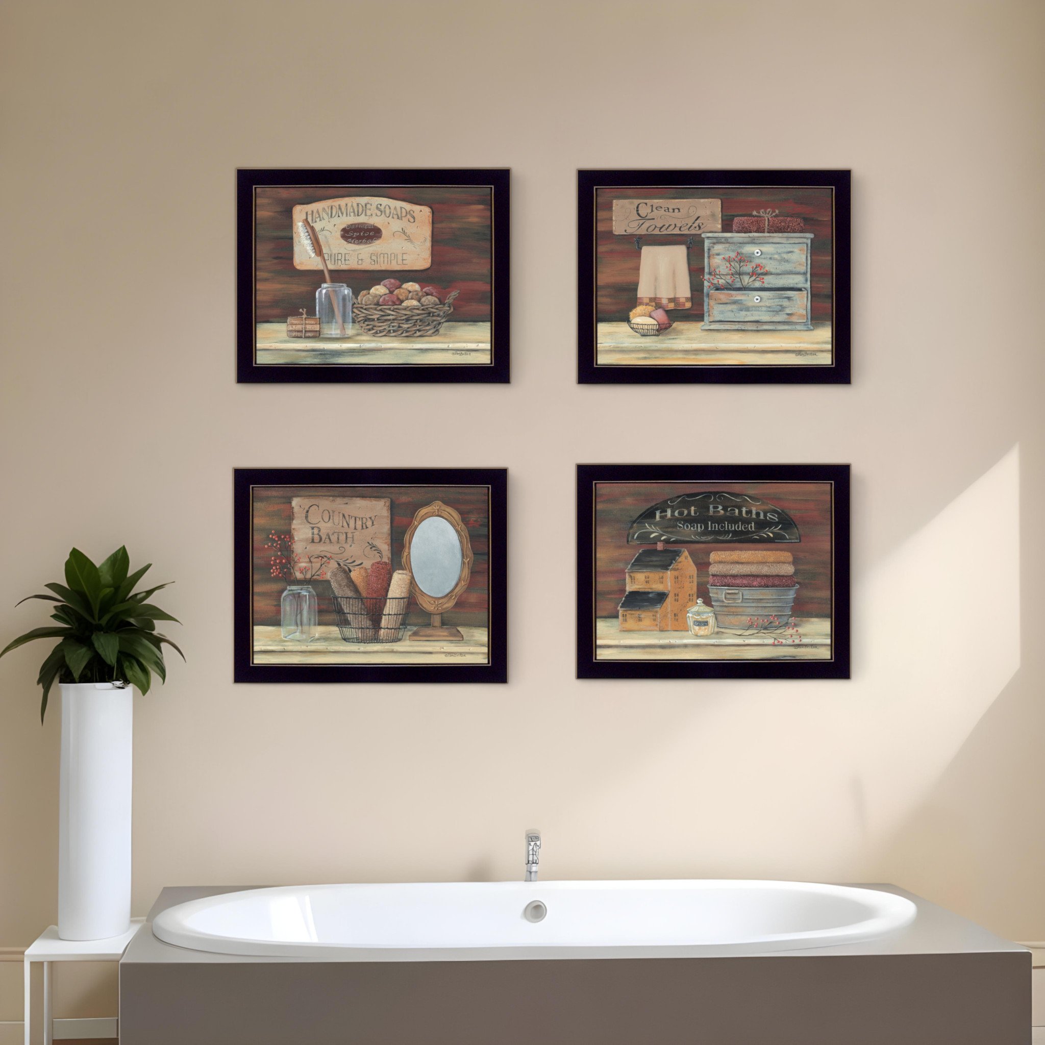 Set Of Four Bathroom Collection II 2 Black Framed Print Bathroom Wall Art