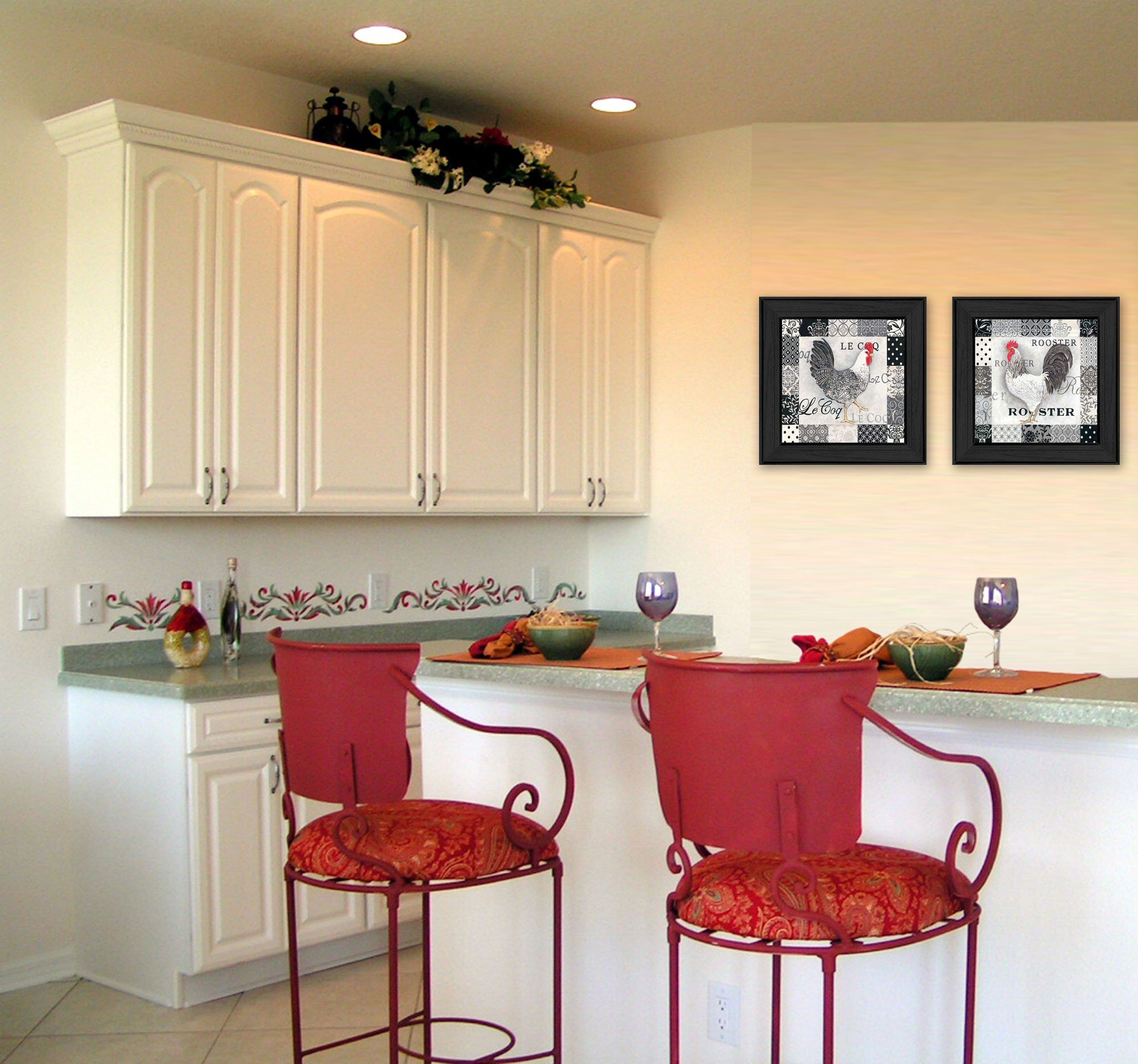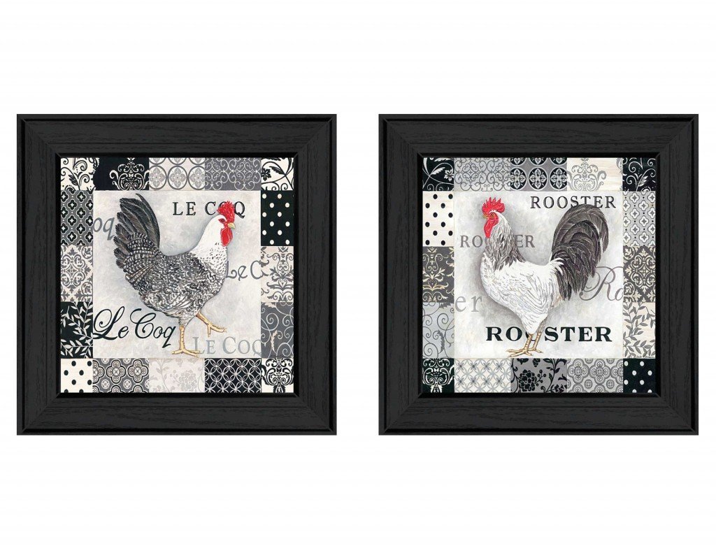 The set of two rooster i black framed print wall art is the perfect decorative accessory for your home. Bring a little bit of the farm indoors when you hang this rooster artwork. This print is a visual artistic expression that allows you to decorate your space in style. Reproduced for you on paper, this hanging decorative accent will be a trendy and fashionable way to dress your walls. Adding this hanging wall art to your space to make your room feel more finished and attractive. Utilize this opportunity to create a focal point in the room with this fabulous wall decor option. 14-inch H x 28-inch W x 1.5-inch D