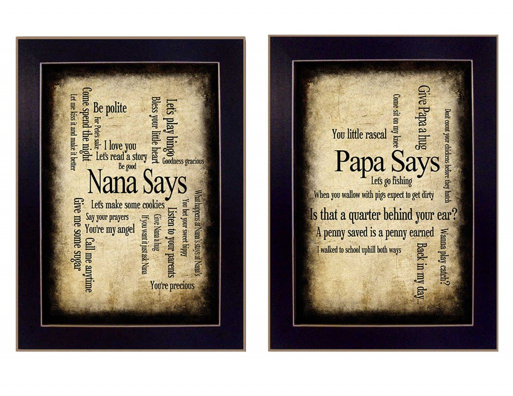 Unique and decorative, this set of two nana or papa black framed print wall art will leave a lasting impression. This print is a visual artistic expression that allows you to decorate your space in style. Reproduced for you on paper, this hanging decorative accent will be a trendy and fashionable way to dress your walls. Hang on your wall to add some up to date fashion and decoration. Instantly liven up your space with this art that brings color and dimension to your walls. 14-inch H x 20-inch W x 1.5-inch D