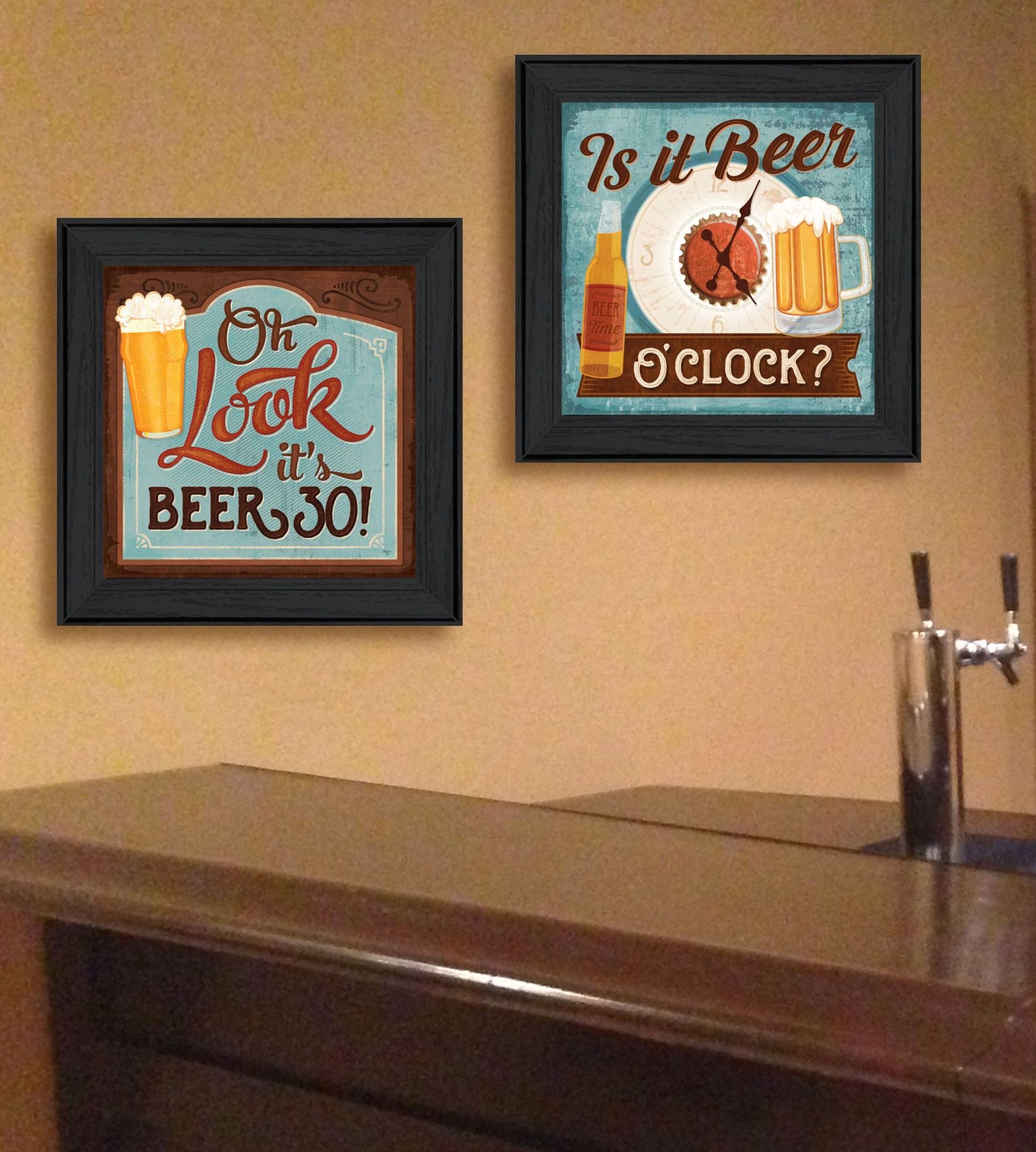 Bring some sizzle to your space with this eye-catching set of two beer oclock black framed print wall art. This print is a visual artistic expression that allows you to decorate your space in style. Reproduced for you on paper, this hanging decorative accent will be a trendy and fashionable way to dress your walls. Hang on your wall to add some up to date fashion and decoration. Utilize this opportunity to create a focal point in the room with this fabulous wall decor option. 14-inch H x 28-inch W x 1.5-inch D
