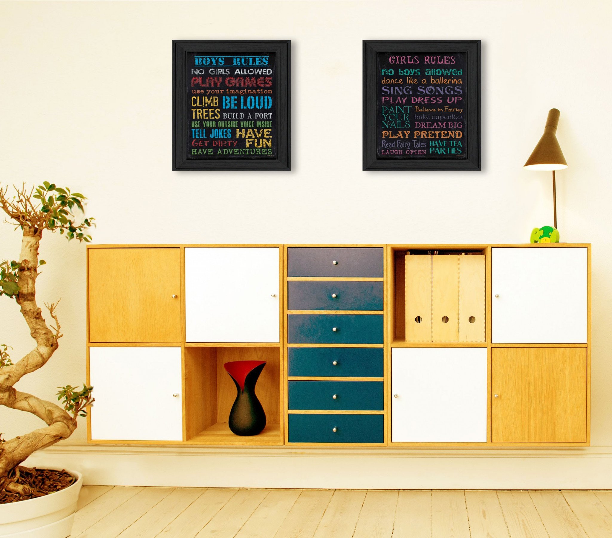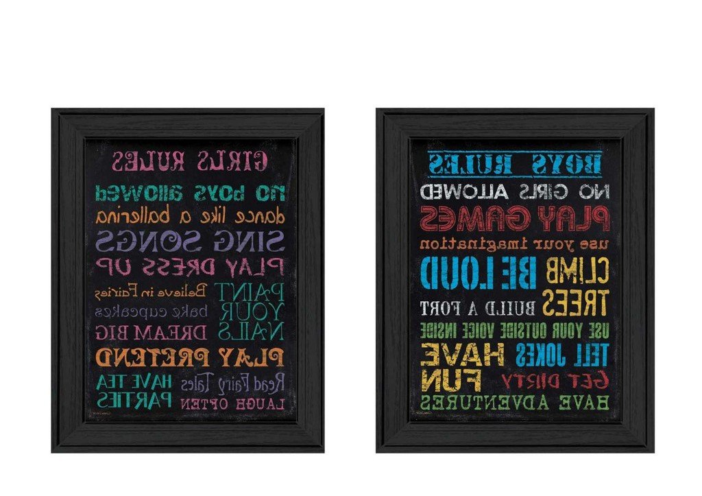 Unique and decorative, this set of two family kids rules black framed print wall art will leave a lasting impression. This print is a visual artistic expression that allows you to decorate your space in style. Reproduced for you on paper, this hanging decorative accent will be a trendy and fashionable way to dress your walls. Hang on your wall to add some up to date fashion and decoration. Instantly liven up your space with this art that brings color and dimension to your walls. 19-inch H x 30-inch W x 1.5-inch D