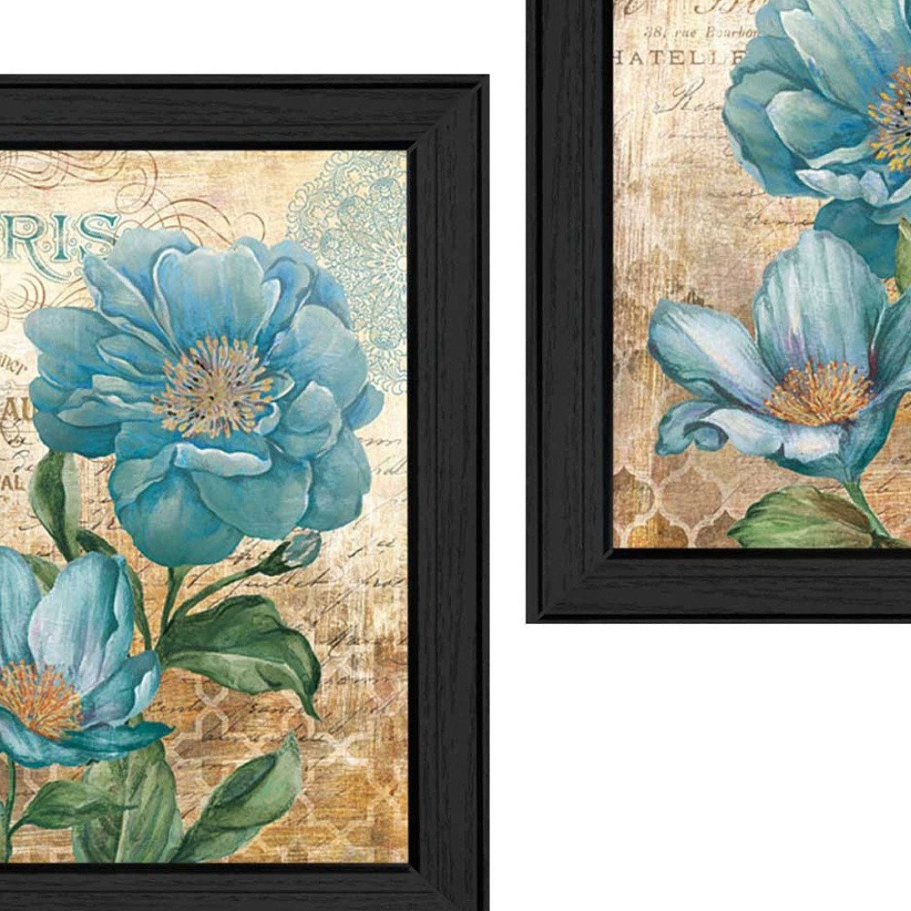 Bring some sizzle to your space with this eye-catching set of two paris blue floral postcard black framed print wall art. This print is a visual artistic expression that allows you to decorate your space in style. Reproduced for you on paper, this hanging decorative accent will be a trendy and fashionable way to dress your walls. Hang on your wall to add some up to date fashion and decoration. Utilize this opportunity to create a focal point in the room with this fabulous wall decor option. 19-inch H x 30-inch W x 1.5-inch D