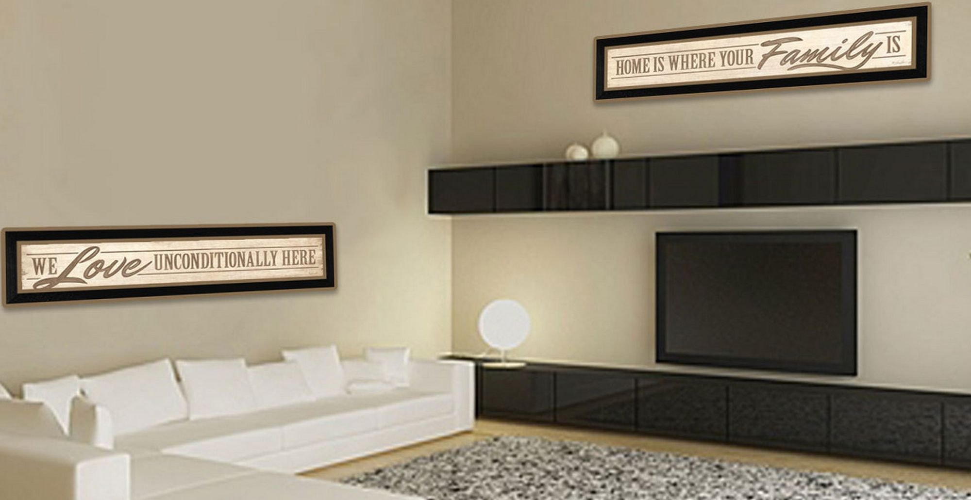 Add an air of fashion to your room and rejuvenate the space with this set of two love family and friends black framed print wall art. This print is a visual artistic expression that allows you to decorate your space in style. Reproduced for you on paper, this hanging decorative accent will be a trendy and fashionable way to dress your walls. Hang on your wall to add some up to date fashion and decoration. Utilize this opportunity to create a focal point in the room with this fabulous wall decor option. 8-inch H x 76-inch W x 1.5-inch D