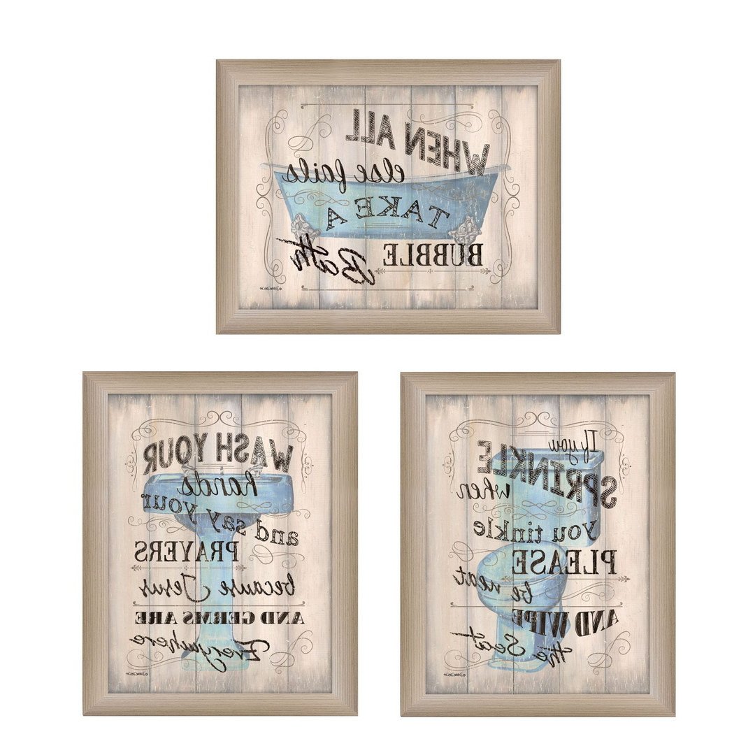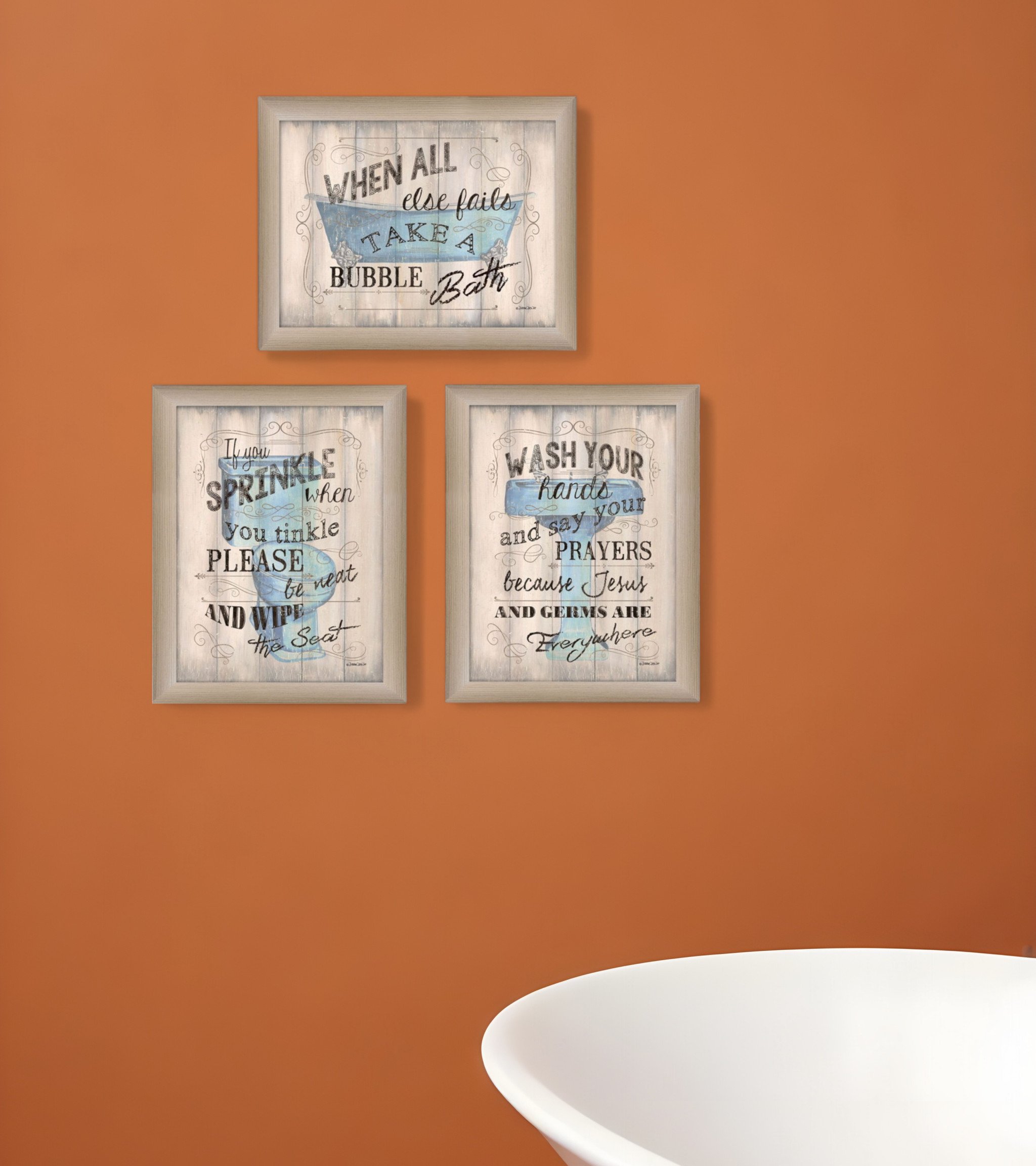 This set of three bathroom humor brown framed wall art will add a beautiful decorative accent to your decor. This print is a visual artistic expression that allows you to decorate your space in style. Reproduced for you on paper, this hanging decorative accent will be a trendy and fashionable way to dress your walls. Hang on your wall to add some up to date fashion and decoration. Instantly liven up your space with this art that brings color and dimension to your walls. 19-inch H x 45-inch W x 1.5-inch D