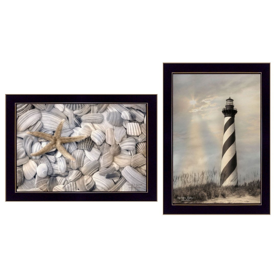The set of two cape hatteras lighthouse and sea shells 1 black framed print wall art is the perfect decorative accessory for your home. This print is a visual artistic expression that allows you to decorate your space in style. Reproduced for you on paper, this hanging decorative accent will be a trendy and fashionable way to dress your walls. Adding this hanging wall art to your space to make your room feel more finished and attractive. Instantly liven up your space with this art that brings color and dimension to your walls. 14-inch H x 20-inch W x 1-inch D