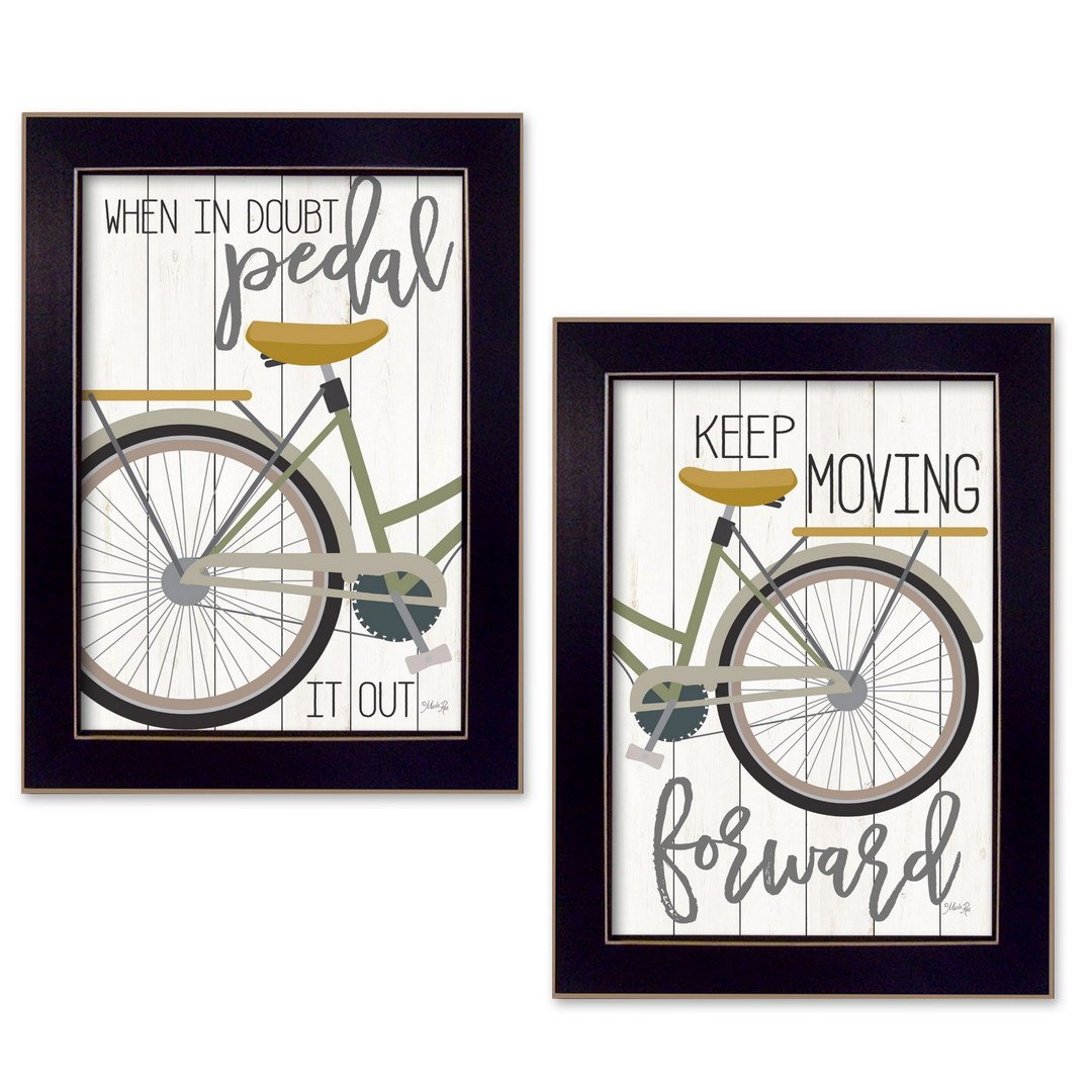 Bring some sizzle to your space with this eye-catching set of two pedal it out 2 black framed print wall art. This transportation inspired wall art features a bicycles icon and will bring a refreshing look and perspective to your walls. This print is a visual artistic expression that allows you to decorate your space in style. Reproduced for you on paper, this hanging decorative accent will be a trendy and fashionable way to dress your walls. Adding this hanging wall art to your space to make your room feel more finished and attractive. Utilize this opportunity to create a focal point in the room with this fabulous wall decor option. 20-inch H x 14-inch W x 1-inch D