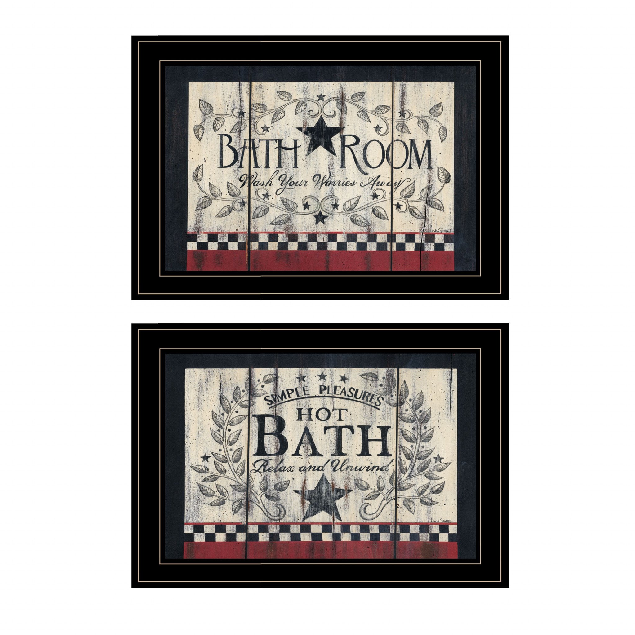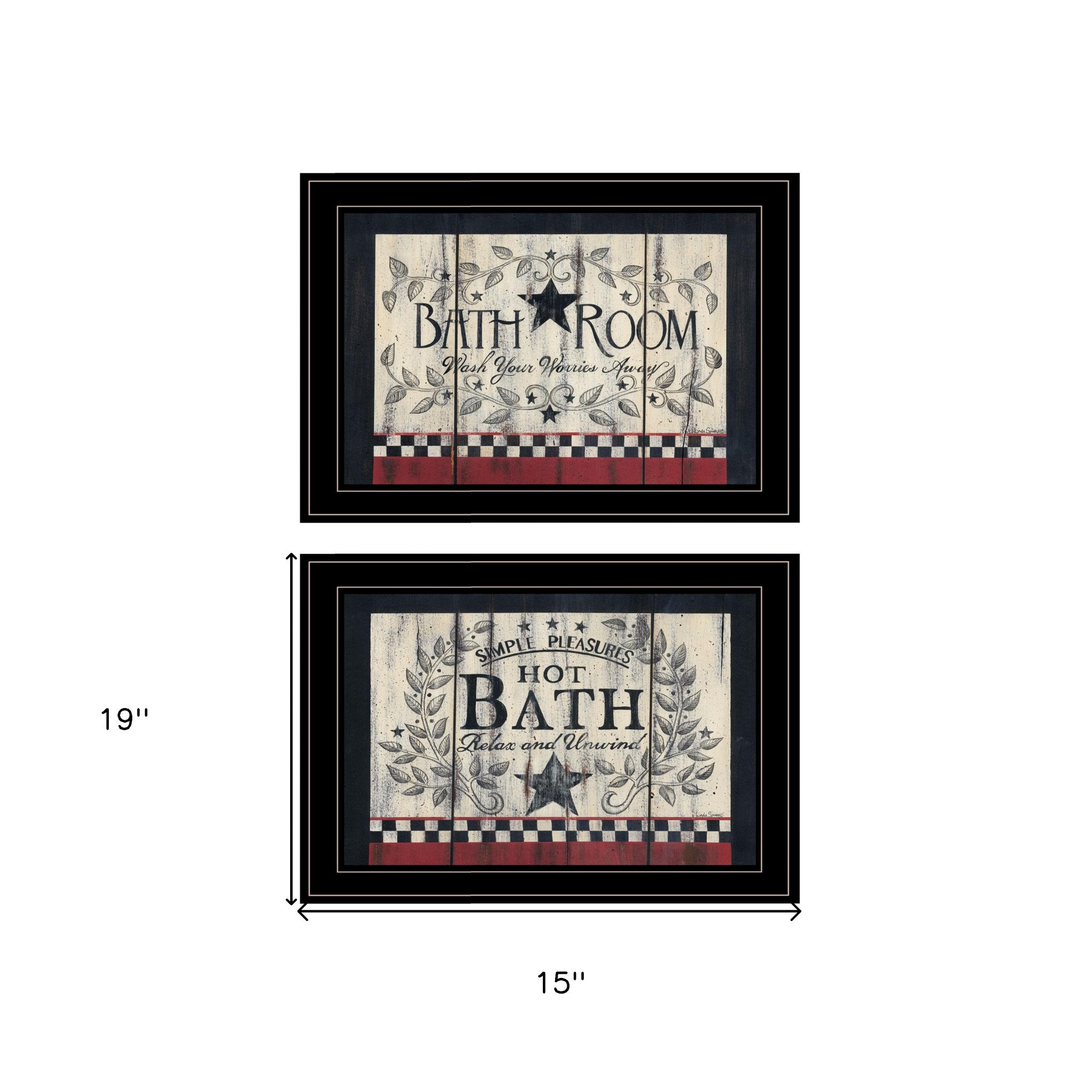 Unique and decorative, this set of two hot bath 8 black framed print bathroom wall art will leave a lasting impression. This print is a visual artistic expression that allows you to decorate your space in style. Reproduced for you on paper, this hanging decorative accent will be a trendy and fashionable way to dress your walls. Hang on your wall to add some up to date fashion and decoration. Instantly liven up your space with this art that brings color and dimension to your walls. 15-inch H x 19-inch W x 1-inch D