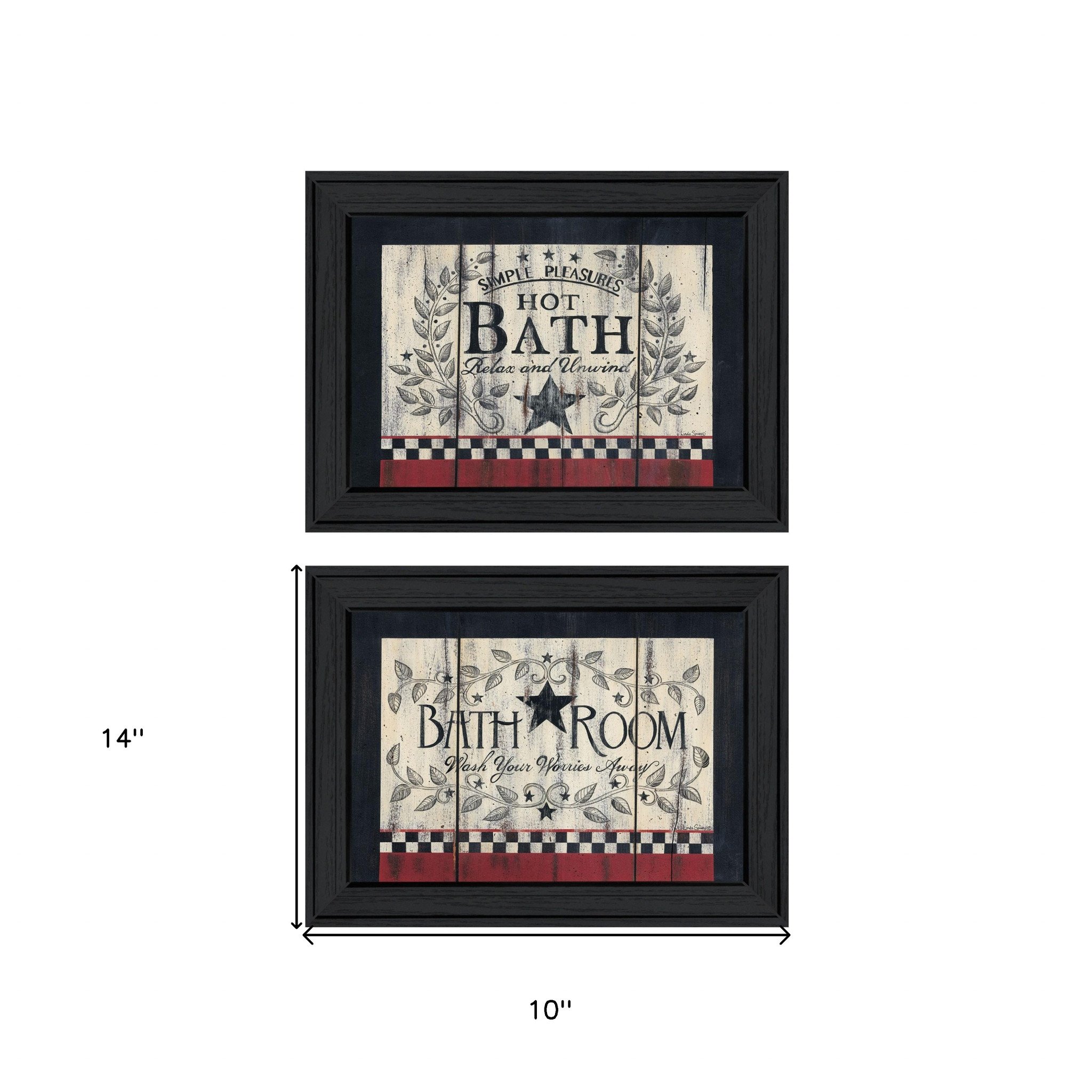 The set of two hot bath 1 black framed print bathroom wall art is the perfect decorative accessory for your home. This print is a visual artistic expression that allows you to decorate your space in style. Reproduced for you on paper, this hanging decorative accent will be a trendy and fashionable way to dress your walls. Hang on your wall to add some up to date fashion and decoration. Instantly liven up your space with this art that brings color and dimension to your walls. 10-inch H x 14-inch W x 1-inch D