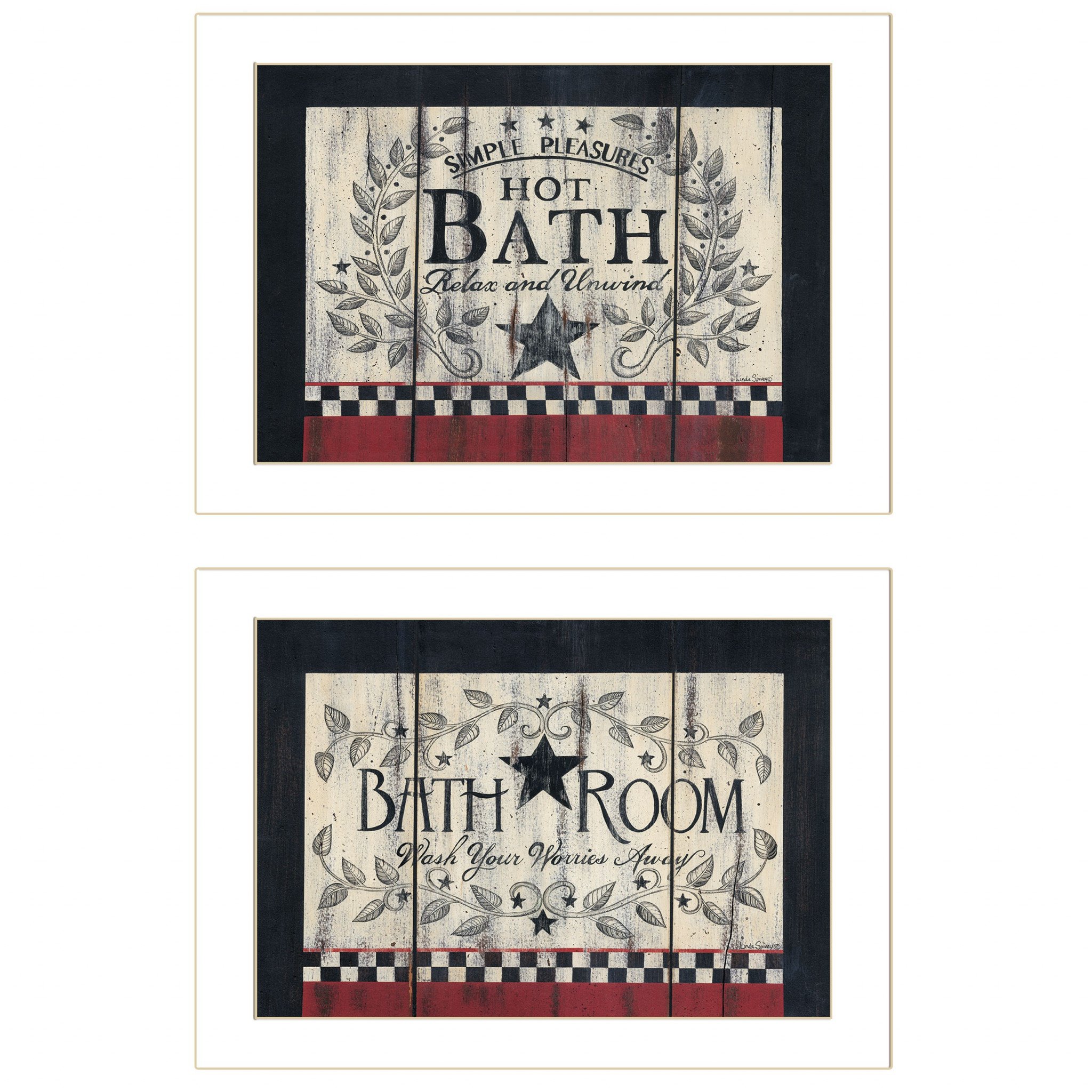 Add an air of fashion to your room and rejuvenate the space with this set of two hot bath 3 white framed print bathroom wall art. This print is a visual artistic expression that allows you to decorate your space in style. Reproduced for you on paper, this hanging decorative accent will be a trendy and fashionable way to dress your walls. Adding this hanging wall art to your space to make your room feel more finished and attractive. Utilize this opportunity to create a focal point in the room with this fabulous wall decor option. 10-inch H x 14-inch W x 1-inch D