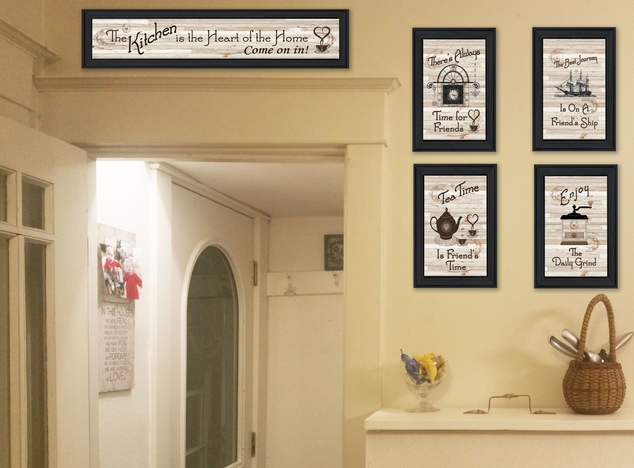 Unique and decorative, this set of five kitchen friendship collection ii 2 black framed print kitchen wall art will leave a lasting impression. This print is a visual artistic expression that allows you to decorate your space in style. Reproduced for you on paper, this hanging decorative accent will be a trendy and fashionable way to dress your walls. Adding this hanging wall art to your space to make your room feel more finished and attractive. Utilize this opportunity to create a focal point in the room with this fabulous wall decor option. 11-inch H x 33-inch W x 1-inch D