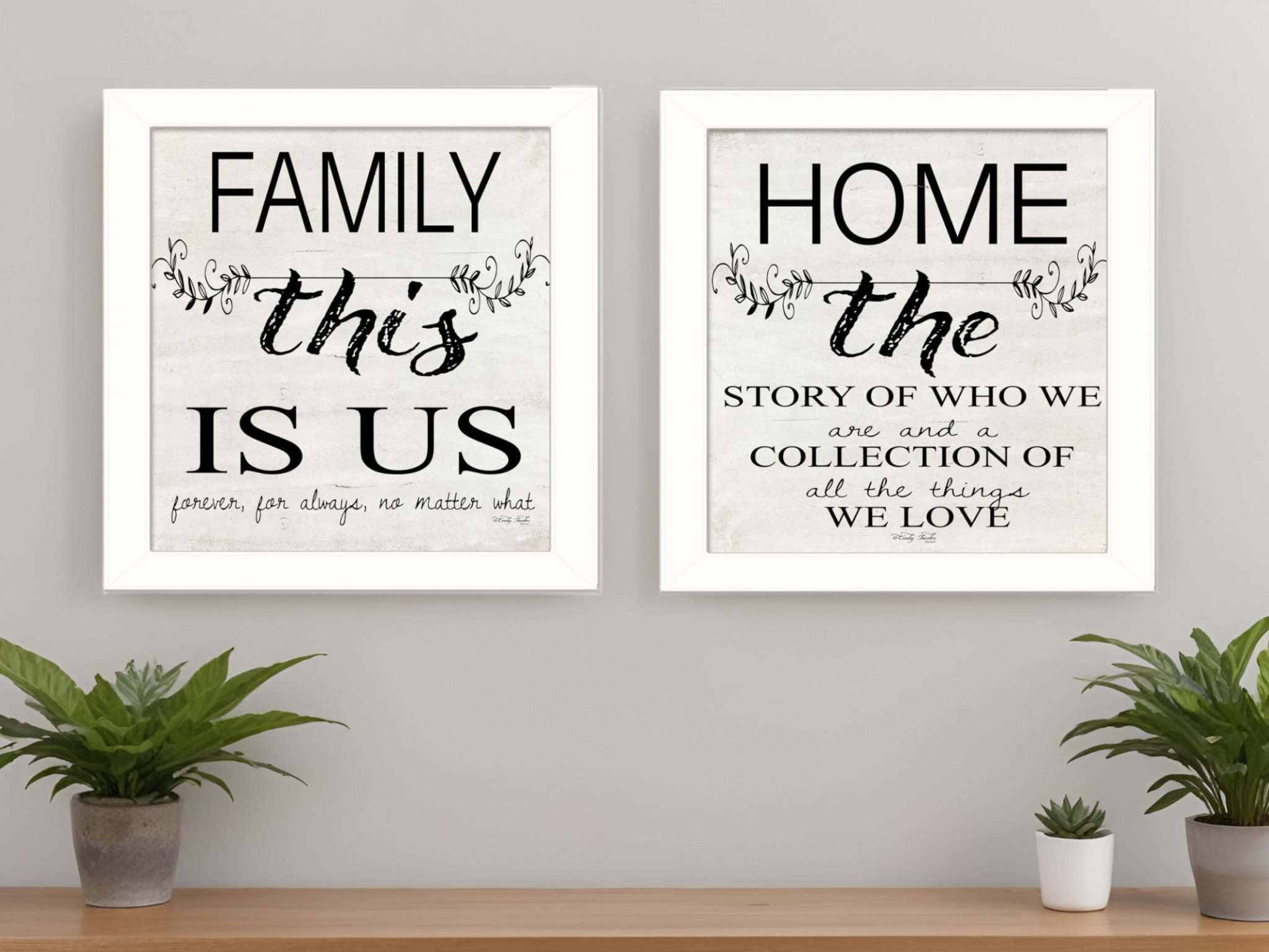The set of two family 2 white framed print wall art is the perfect decorative accessory for your home. This print is a visual artistic expression that allows you to decorate your space in style. Reproduced for you on paper, this hanging decorative accent will be a trendy and fashionable way to dress your walls. Adding this hanging wall art to your space to make your room feel more finished and attractive. Utilize this opportunity to create a focal point in the room with this fabulous wall decor option. 14-inch H x 14-inch W x 1-inch D