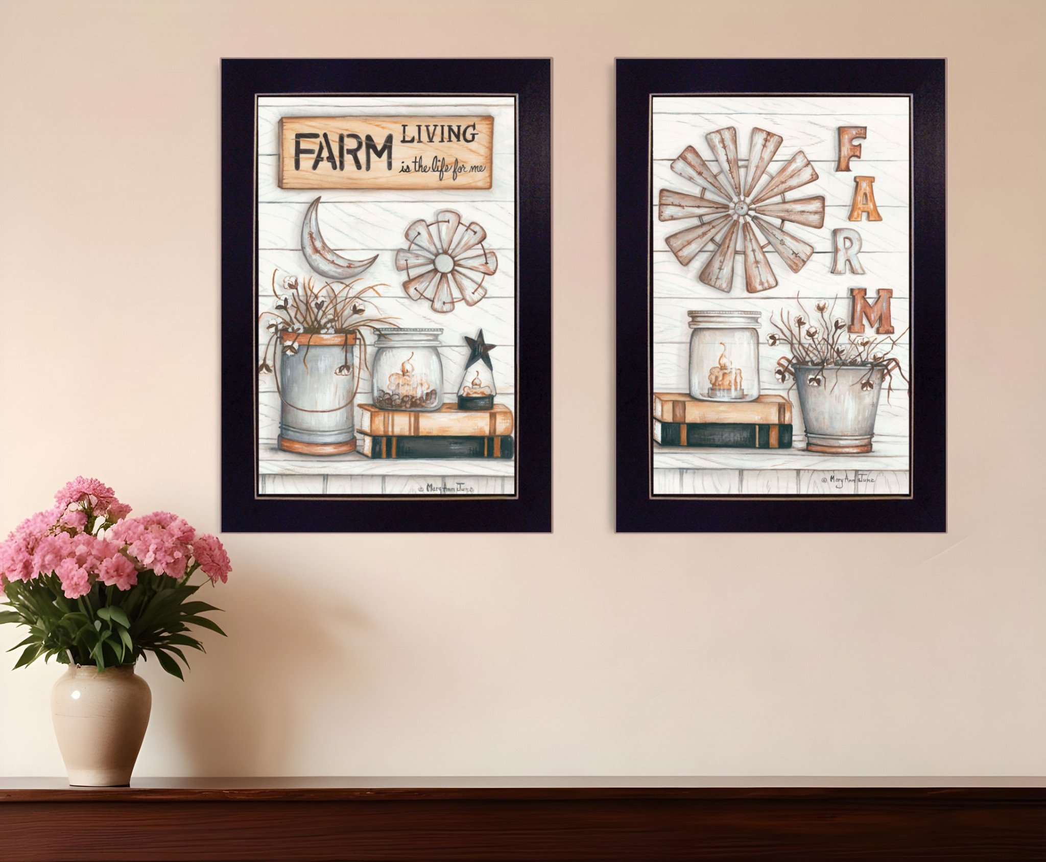 Bring some sizzle to your space with this eye-catching set of two farm living 1 black framed print wall art. This print is a visual artistic expression that allows you to decorate your space in style. Reproduced for you on paper, this hanging decorative accent will be a trendy and fashionable way to dress your walls. Hang on your wall to add some up to date fashion and decoration. Utilize this opportunity to create a focal point in the room with this fabulous wall decor option. 20-inch H x 14-inch W x 1-inch D