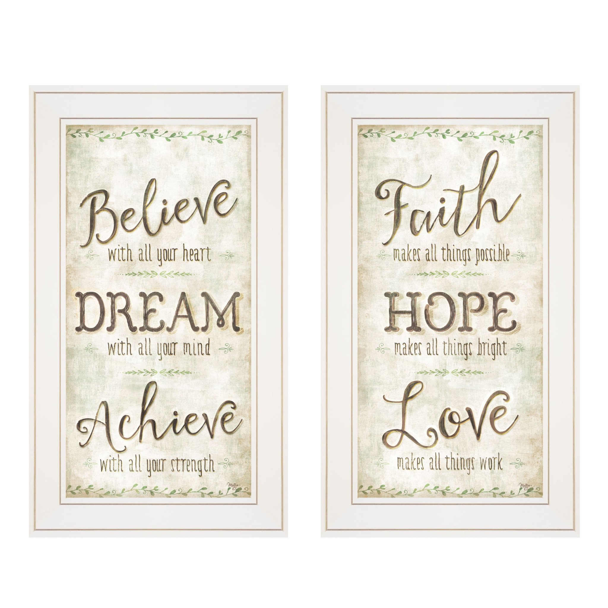 Unique and decorative, this set of two faith or believe 1 white framed print wall art will leave a lasting impression. This print is a visual artistic expression that allows you to decorate your space in style. Reproduced for you on paper, this hanging decorative accent will be a trendy and fashionable way to dress your walls. Hang on your wall to add some up to date fashion and decoration. Utilize this opportunity to create a focal point in the room with this fabulous wall decor option. 21-inch H x 12-inch W x 1-inch D
