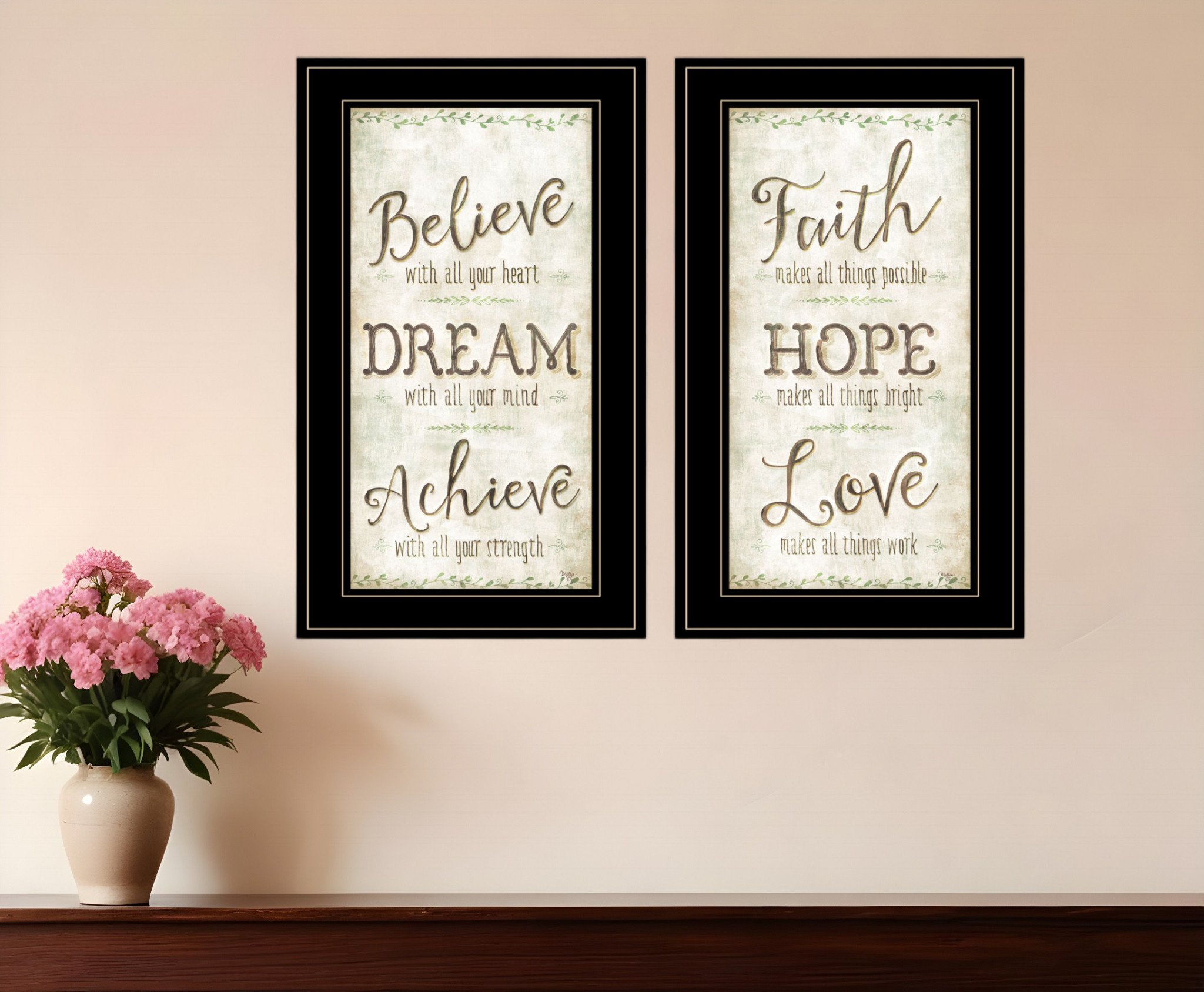This set of two faith or believe 2 black framed print wall art will add a beautiful decorative accent to your decor. This print is a visual artistic expression that allows you to decorate your space in style. Reproduced for you on paper, this hanging decorative accent will be a trendy and fashionable way to dress your walls. Hang on your wall to add some up to date fashion and decoration. Utilize this opportunity to create a focal point in the room with this fabulous wall decor option. 21-inch H x 12-inch W x 1-inch D
