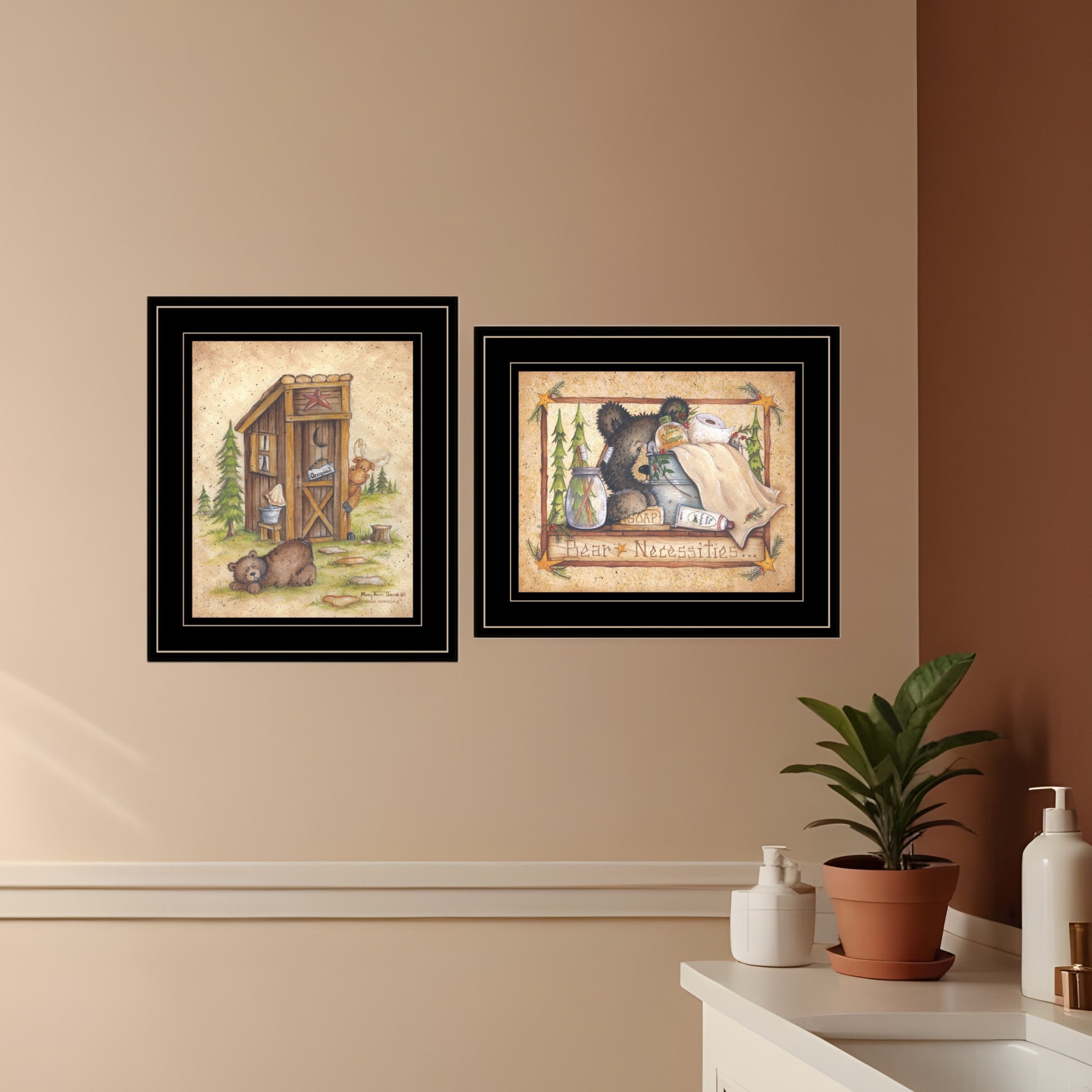 Unique and decorative, this set of two bear or still waiting 2 black framed print wall art will leave a lasting impression. Add a sense of the woods, mountain or lodge lifestyle to your walls with this outdoorsy bear wall art. This print is a visual artistic expression that allows you to decorate your space in style. Reproduced for you on paper, this hanging decorative accent will be a trendy and fashionable way to dress your walls. Hang on your wall to add some up to date fashion and decoration. Utilize this opportunity to create a focal point in the room with this fabulous wall decor option. 11-inch H x 13-inch W x 1-inch D