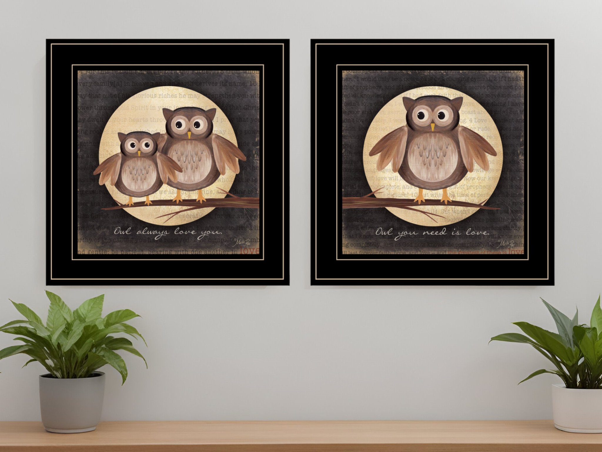 Bring some sizzle to your space with this eye-catching set of two owl always love and need you 2 black framed print wall art. Update your walls with this woodland animal decor. This print is a visual artistic expression that allows you to decorate your space in style. Reproduced for you on paper, this hanging decorative accent will be a trendy and fashionable way to dress your walls. Hang on your wall to add some up to date fashion and decoration. Utilize this opportunity to create a focal point in the room with this fabulous wall decor option. 15-inch H x 15-inch W x 1-inch D