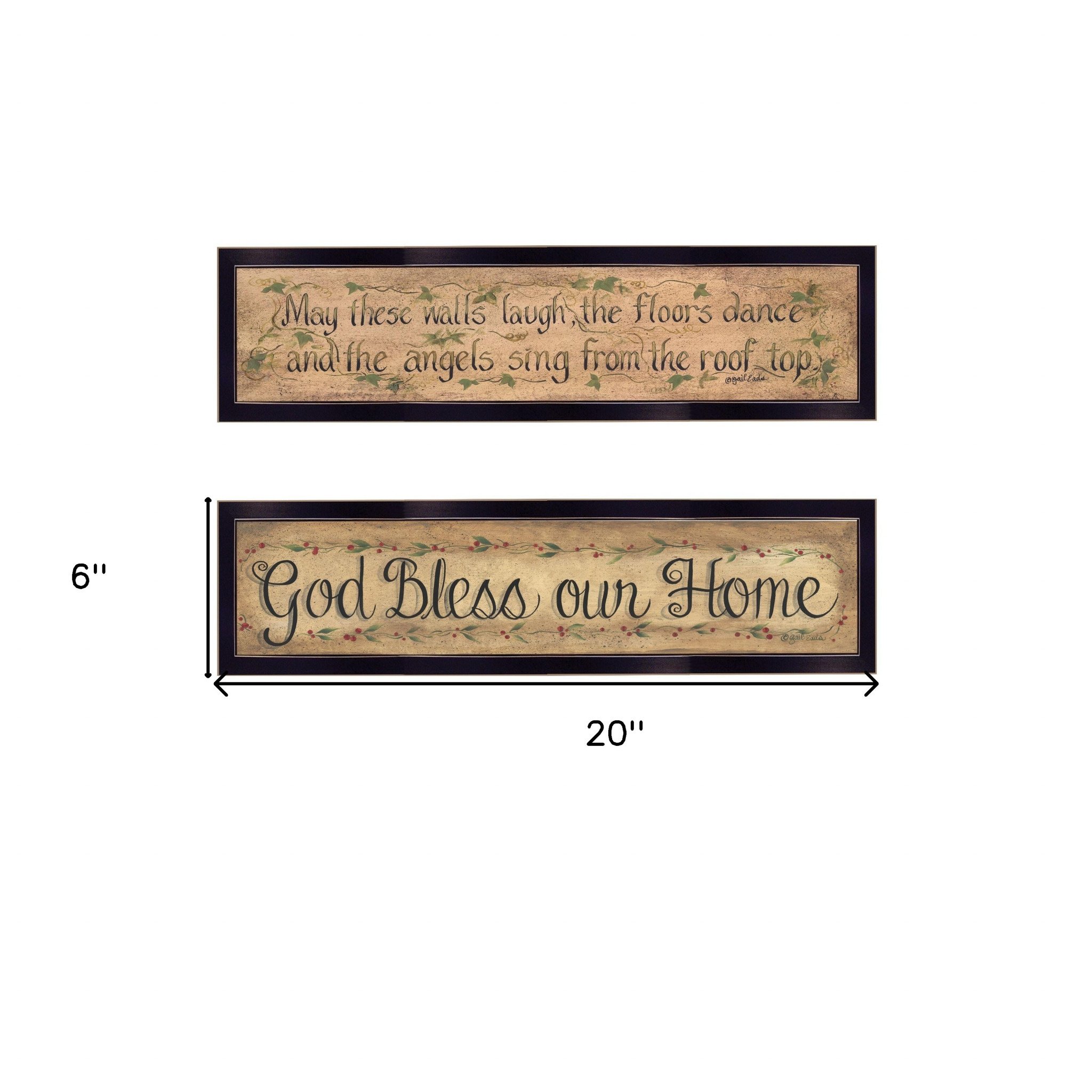 The set of two blessed home black framed print wall art is the perfect decorative accessory for your home. This print is a visual artistic expression that allows you to decorate your space in style. Reproduced for you on paper, this hanging decorative accent will be a trendy and fashionable way to dress your walls. Adding this hanging wall art to your space to make your room feel more finished and attractive. Instantly liven up your space with this art that brings color and dimension to your walls. 6-inch H x 20-inch W x 1-inch D