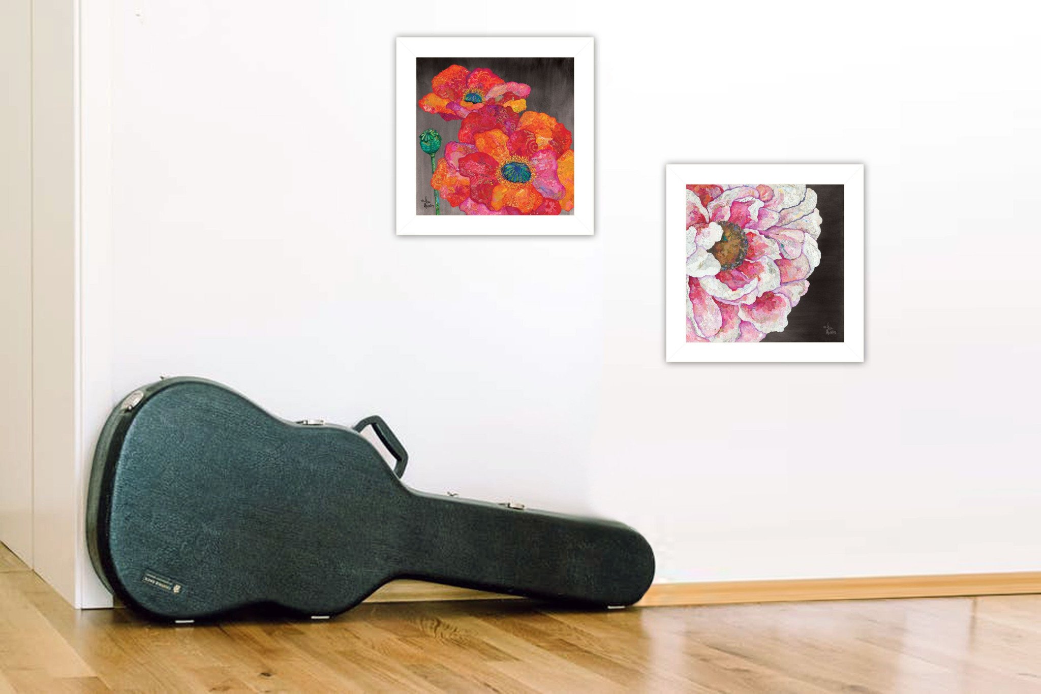 Bring some sizzle to your space with this eye-catching set of two blooms on black 1 white framed print wall art. This print is a visual artistic expression that allows you to decorate your space in style. Reproduced for you on paper, this hanging decorative accent will be a trendy and fashionable way to dress your walls. Adding this hanging wall art to your space to make your room feel more finished and attractive. Utilize this opportunity to create a focal point in the room with this fabulous wall decor option. 15-inch H x 15-inch W x 1-inch D