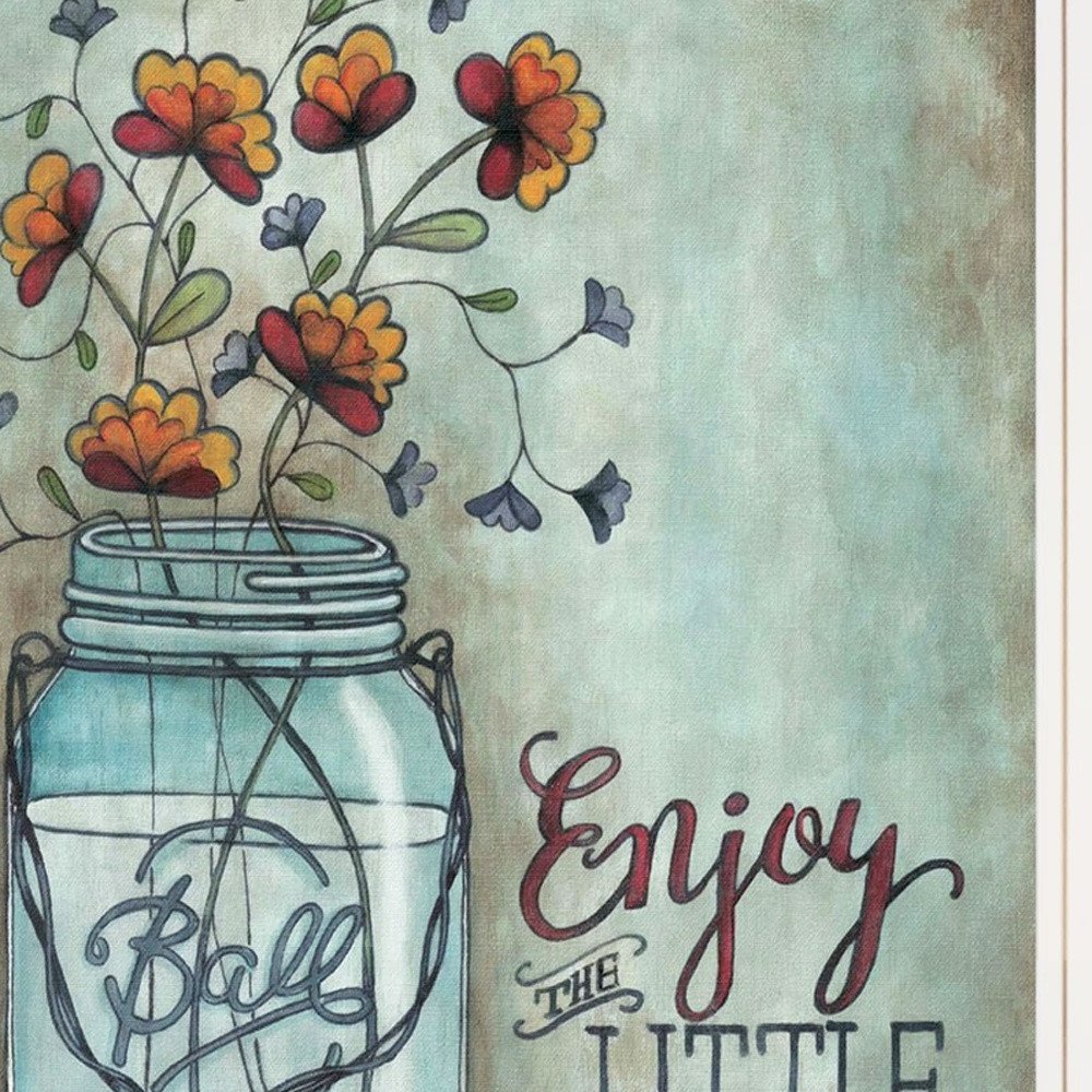 Bring some sizzle to your space with this eye-catching set of two enjoy the little things or happiness 1 white framed print wall art. This print is a visual artistic expression that allows you to decorate your space in style. Reproduced for you on paper, this hanging decorative accent will be a trendy and fashionable way to dress your walls. Hang on your wall to add some up to date fashion and decoration. Utilize this opportunity to create a focal point in the room with this fabulous wall decor option. 19-inch H x 15-inch W x 1-inch D