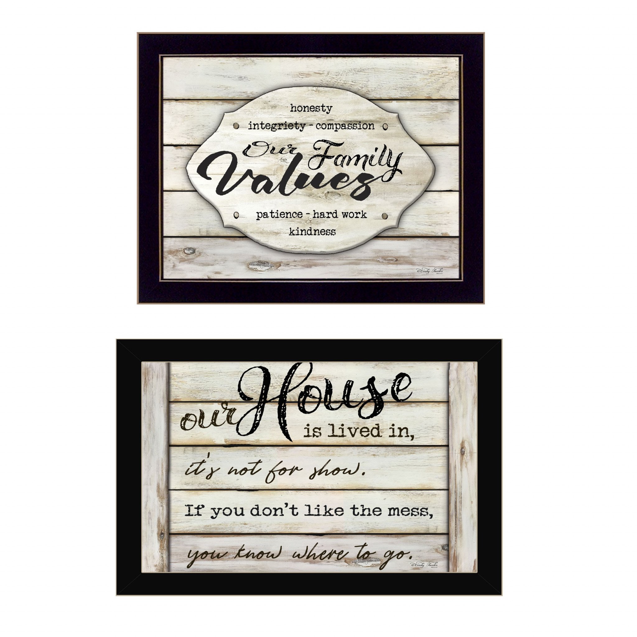 Add an air of fashion to your room and rejuvenate the space with this set of two family values 3 black framed print wall art. This print is a visual artistic expression that allows you to decorate your space in style. Reproduced for you on paper, this hanging decorative accent will be a trendy and fashionable way to dress your walls. Hang on your wall to add some up to date fashion and decoration. Instantly liven up your space with this art that brings color and dimension to your walls. 15-inch H x 21-inch W x 1-inch D