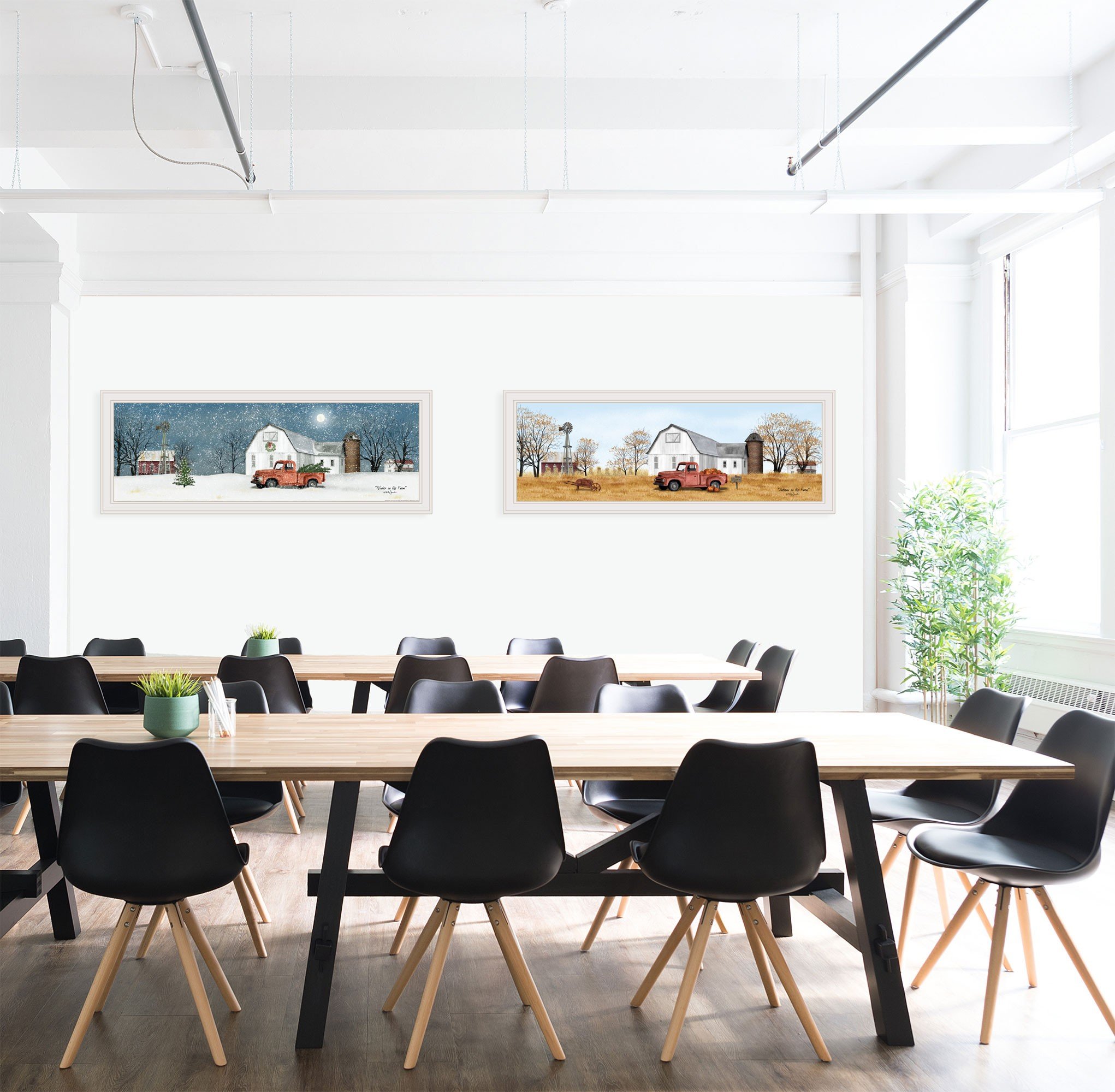The set of two billy jacobs seasonal autumn and winterwhite framed print wall art is the perfect decorative accessory for your home. This print is a visual artistic expression that allows you to decorate your space in style. Reproduced for you on paper, this hanging decorative accent will be a trendy and fashionable way to dress your walls. Adding this hanging wall art to your space to make your room feel more finished and attractive. Utilize this opportunity to create a focal point in the room with this fabulous wall decor option. 15-inch H x 39-inch W x 1-inch D