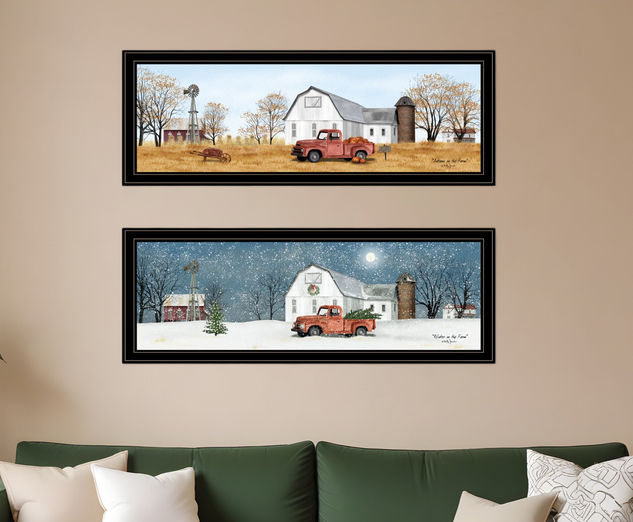 Set Of Two Billy Jacobs Seasonal Autumn or Winter Black Frame Black Framed Print Wall Art
