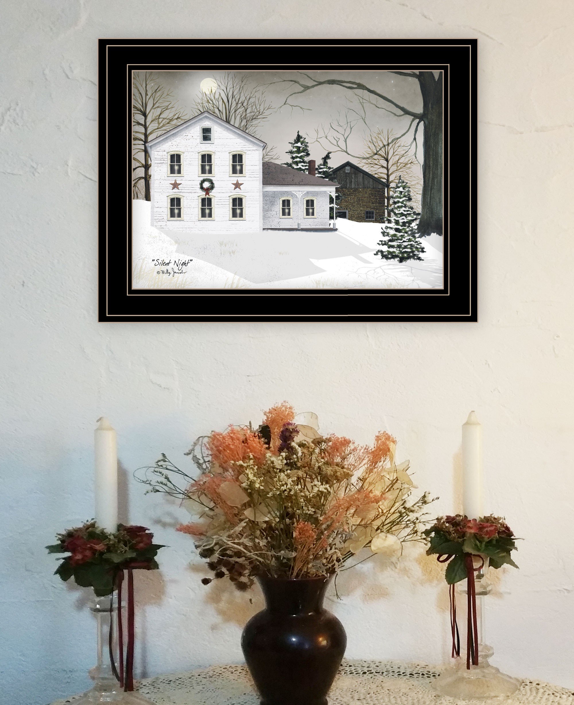 Set a festive christmas mood with this silent night 1 black framed print wall art. This print is a visual artistic expression that allows you to decorate your space in style. Reproduced for you on paper, this hanging decorative accent will be a trendy and fashionable way to dress your walls. Hang on your wall to add some up to date fashion and decoration. Utilize this opportunity to create a focal point in the room with this fabulous wall decor option. 15-inch H x 19-inch W x 1-inch D