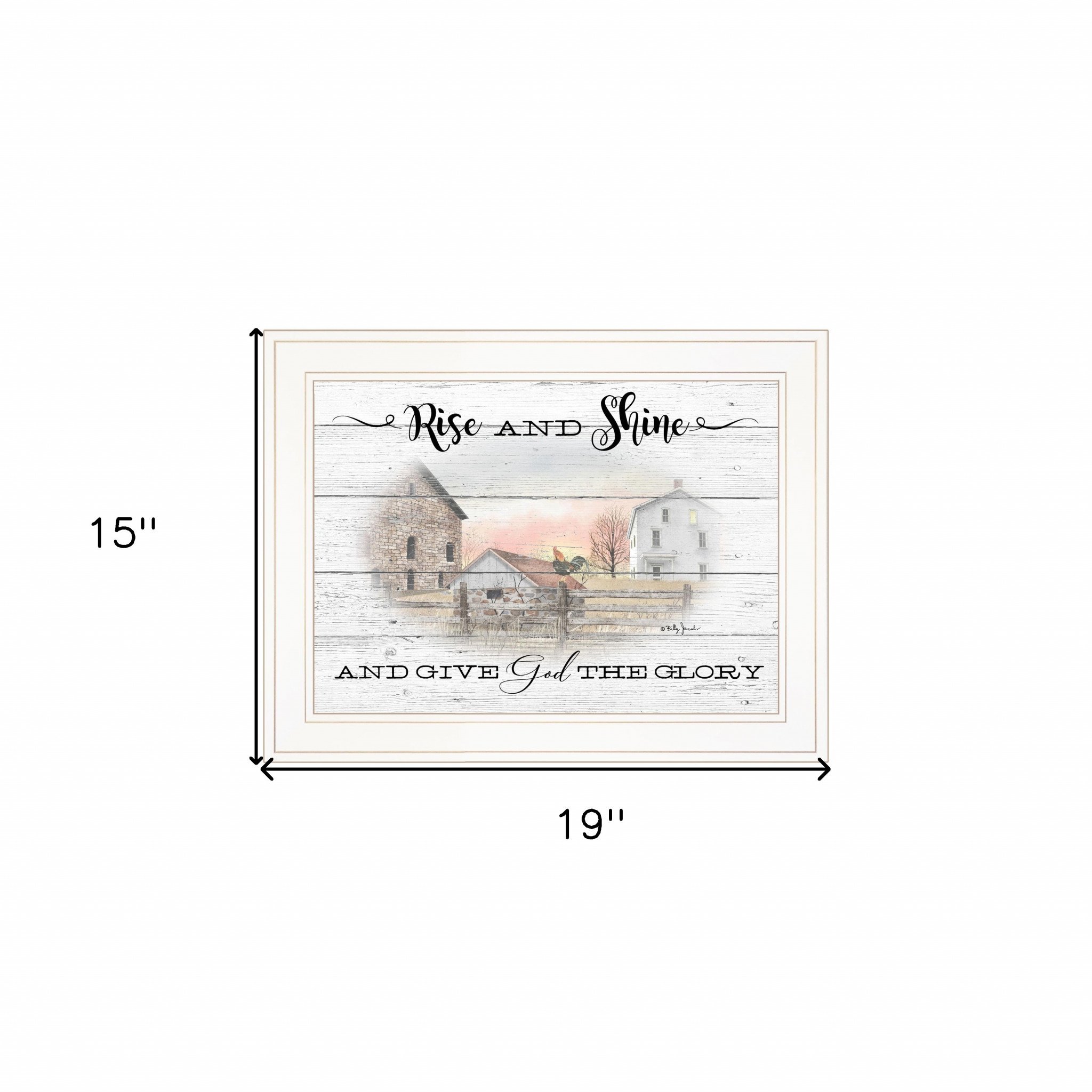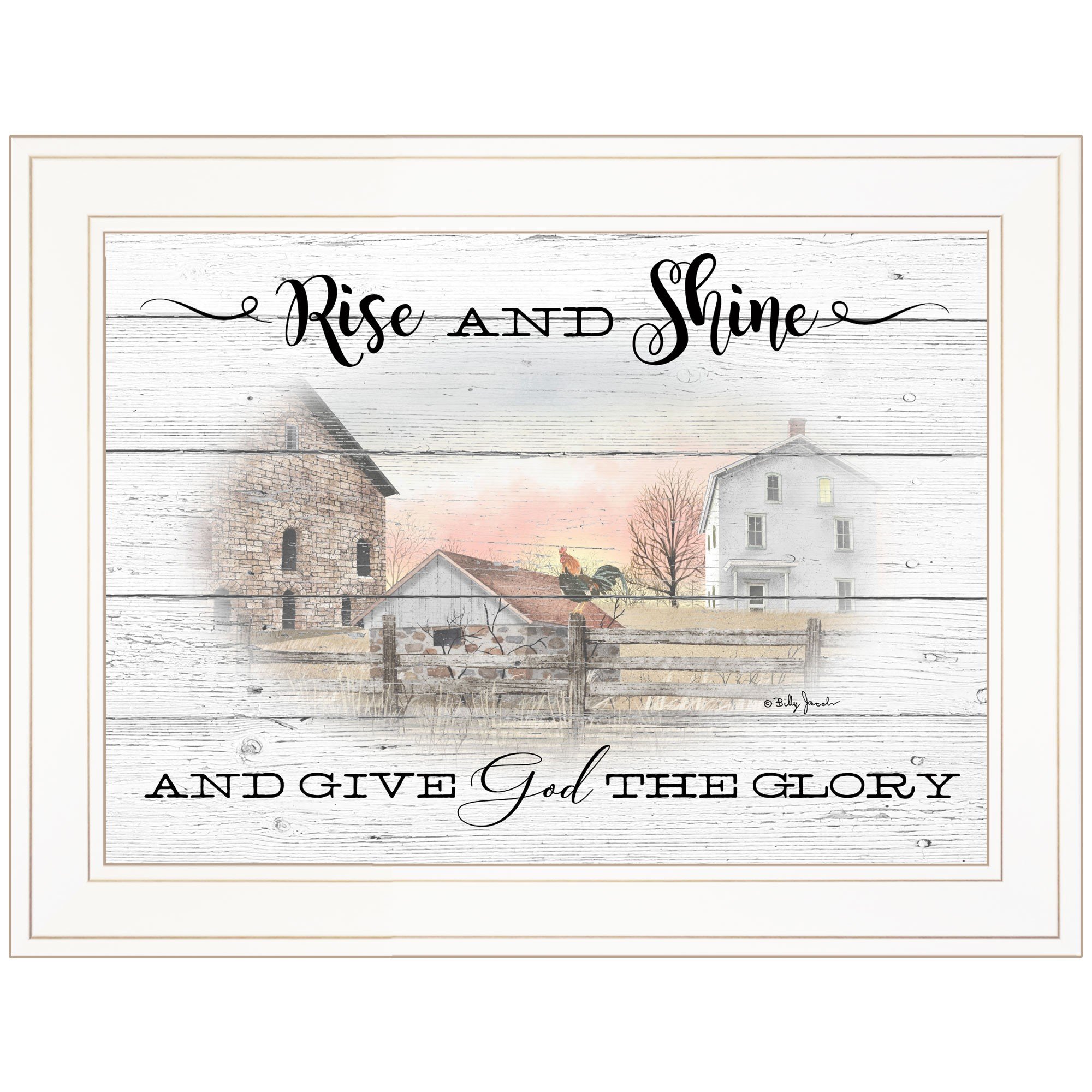 Bring some sizzle to your space with this eye-catching rise and shine 7 white framed print wall art. This print is a visual artistic expression that allows you to decorate your space in style. Reproduced for you on paper, this hanging decorative accent will be a trendy and fashionable way to dress your walls. Adding this hanging wall art to your space to make your room feel more finished and attractive. Utilize this opportunity to create a focal point in the room with this fabulous wall decor option. 15 inches H x 19 inches W x 1 inches D