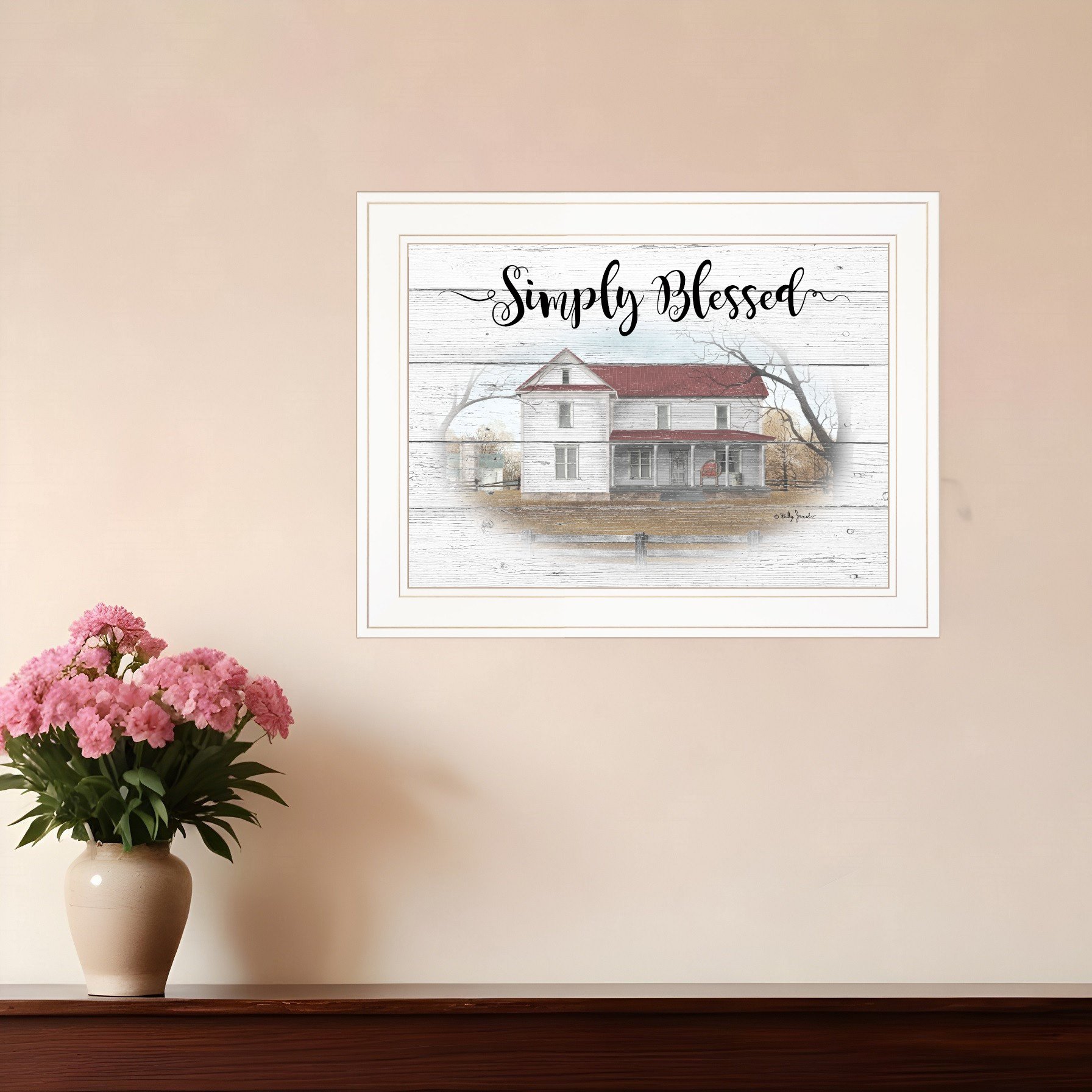 The simply blessed farmhouse white framed print wall art is the perfect decorative accessory for your home. This print is a visual artistic expression that allows you to decorate your space in style. Reproduced for you on paper, this hanging decorative accent will be a trendy and fashionable way to dress your walls. Hang on your wall to add some up to date fashion and decoration. Utilize this opportunity to create a focal point in the room with this fabulous wall decor option. 15 inches H x 19 inches W x 1 inches D