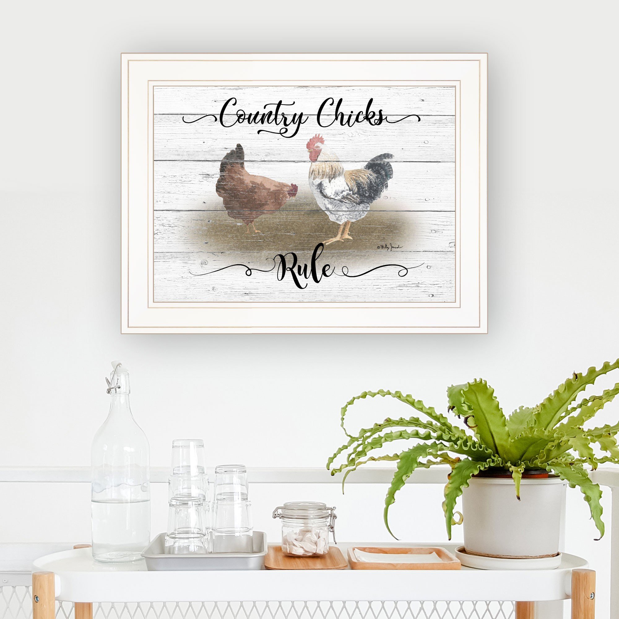 Bring some sizzle to your space with this eye-catching country chicks rule 2 white framed print wall art. This print is a visual artistic expression that allows you to decorate your space in style. Reproduced for you on paper, this hanging decorative accent will be a trendy and fashionable way to dress your walls. Hang on your wall to add some up to date fashion and decoration. Instantly liven up your space with this art that brings color and dimension to your walls. 15-inch H x 19-inch W x 1-inch D