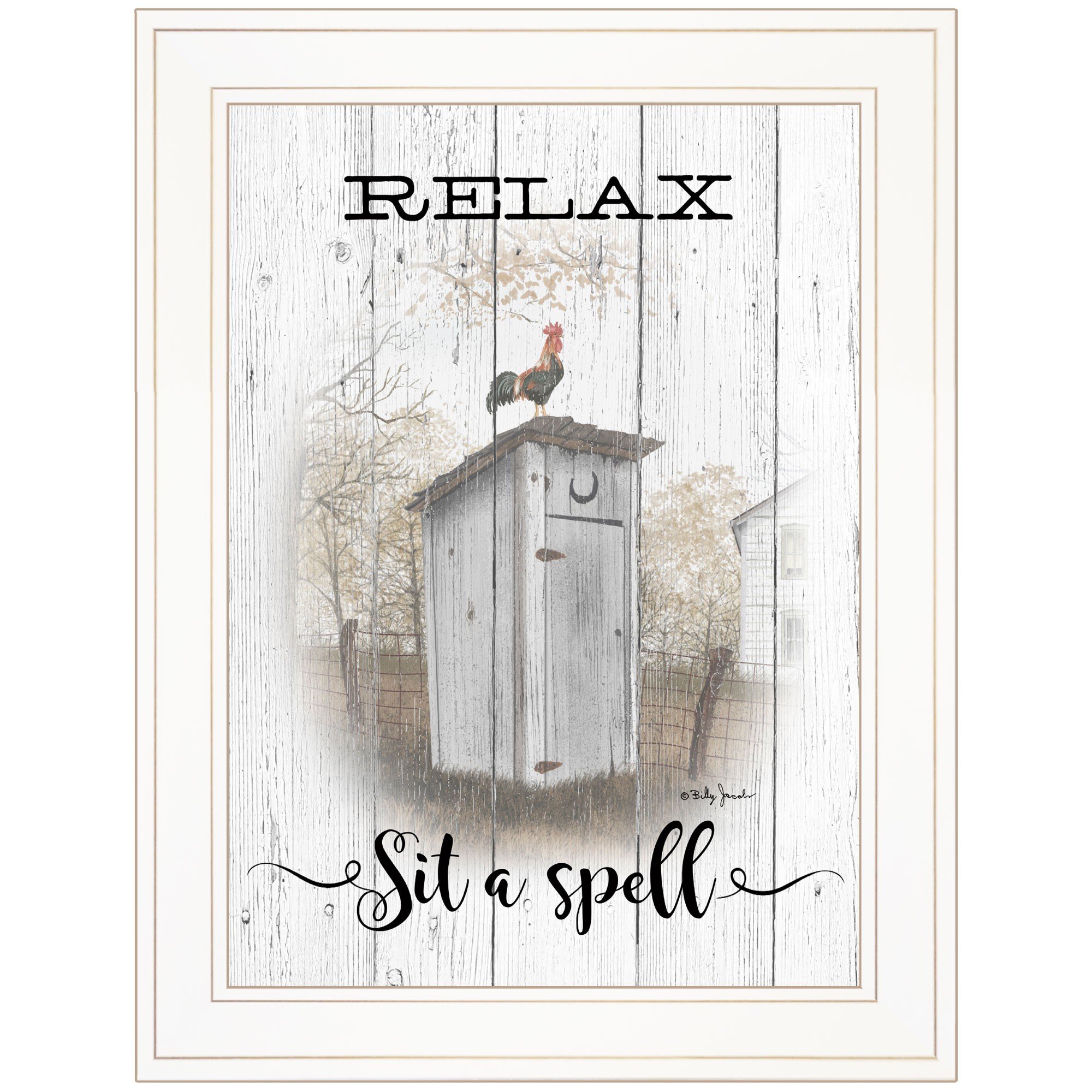 Unique and decorative, this relax sit a spell white framed print bathroom wall art will leave a lasting impression. This print is a visual artistic expression that allows you to decorate your space in style. Reproduced for you on paper, this hanging decorative accent will be a trendy and fashionable way to dress your walls. Adding this hanging wall art to your space to make your room feel more finished and attractive. Utilize this opportunity to create a focal point in the room with this fabulous wall decor option. 19 inches H x 15 inches W x 1 inches D