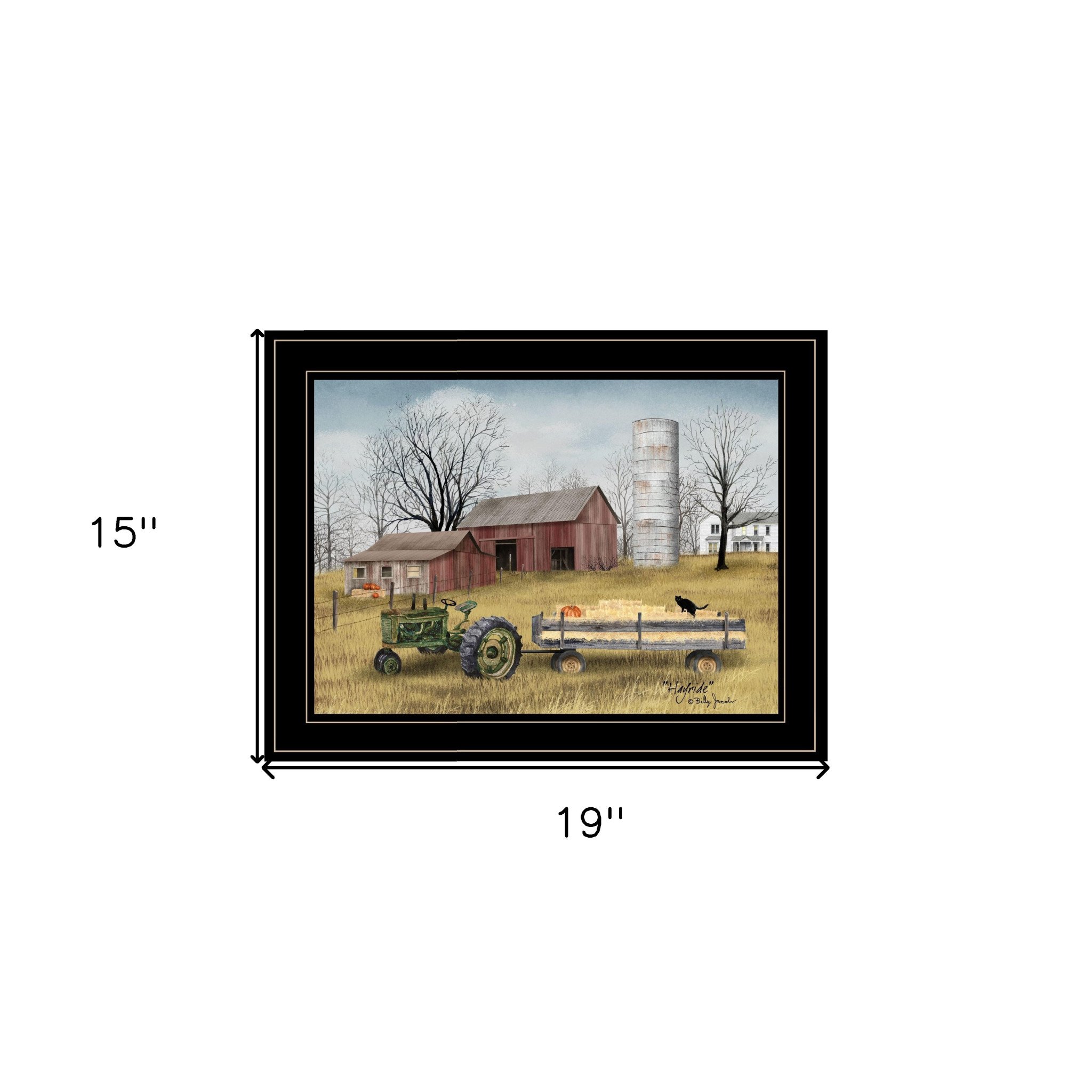 Unique and decorative, this hayride 2 black framed print wall art will leave a lasting impression. This print is a visual artistic expression that allows you to decorate your space in style. Reproduced for you on paper, this hanging decorative accent will be a trendy and fashionable way to dress your walls. Adding this hanging wall art to your space to make your room feel more finished and attractive. Utilize this opportunity to create a focal point in the room with this fabulous wall decor option. 15-inch H x 19-inch W x 1-inch D