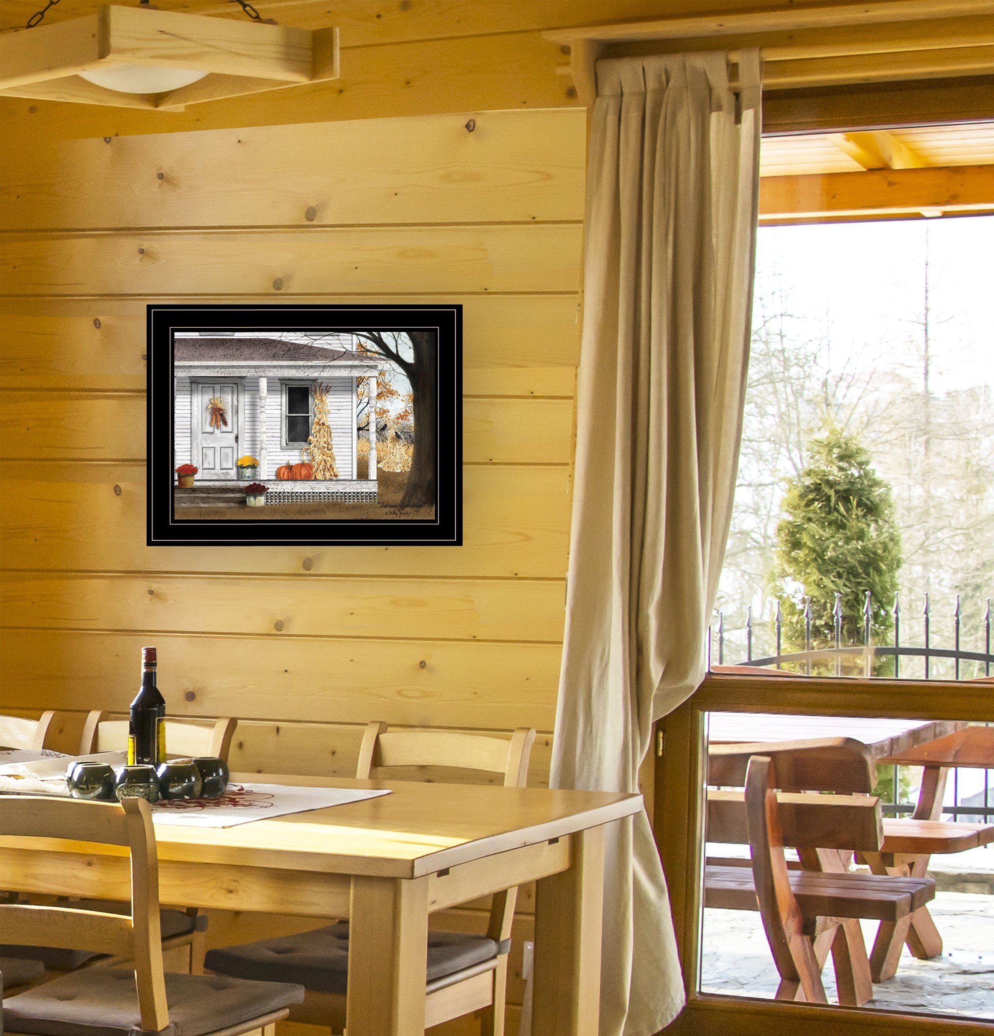 Unique and decorative, this autumn greetings 2 black framed print wall art will leave a lasting impression. This print is a visual artistic expression that allows you to decorate your space in style. Reproduced for you on paper, this hanging decorative accent will be a trendy and fashionable way to dress your walls. Hang on your wall to add some up to date fashion and decoration. Instantly liven up your space with this art that brings color and dimension to your walls. 15-inch H x 19-inch W x 1-inch D
