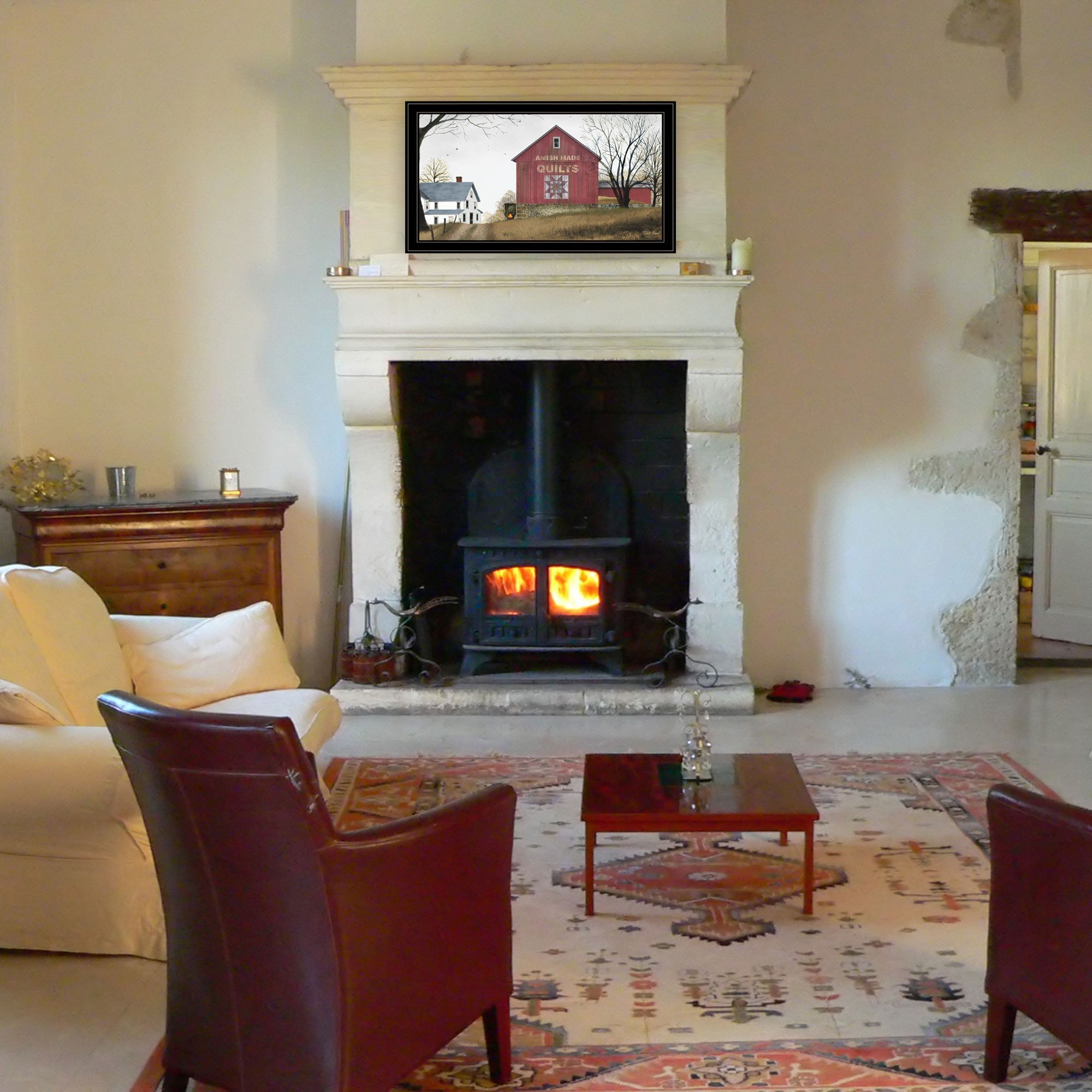 This the quilt barn 5 black framed print wall art will add a beautiful decorative accent to your decor. This print is a visual artistic expression that allows you to decorate your space in style. Reproduced for you on paper, this hanging decorative accent will be a trendy and fashionable way to dress your walls. Adding this hanging wall art to your space to make your room feel more finished and attractive. Utilize this opportunity to create a focal point in the room with this fabulous wall decor option. 19-inch H x 33-inch W x 1-inch D