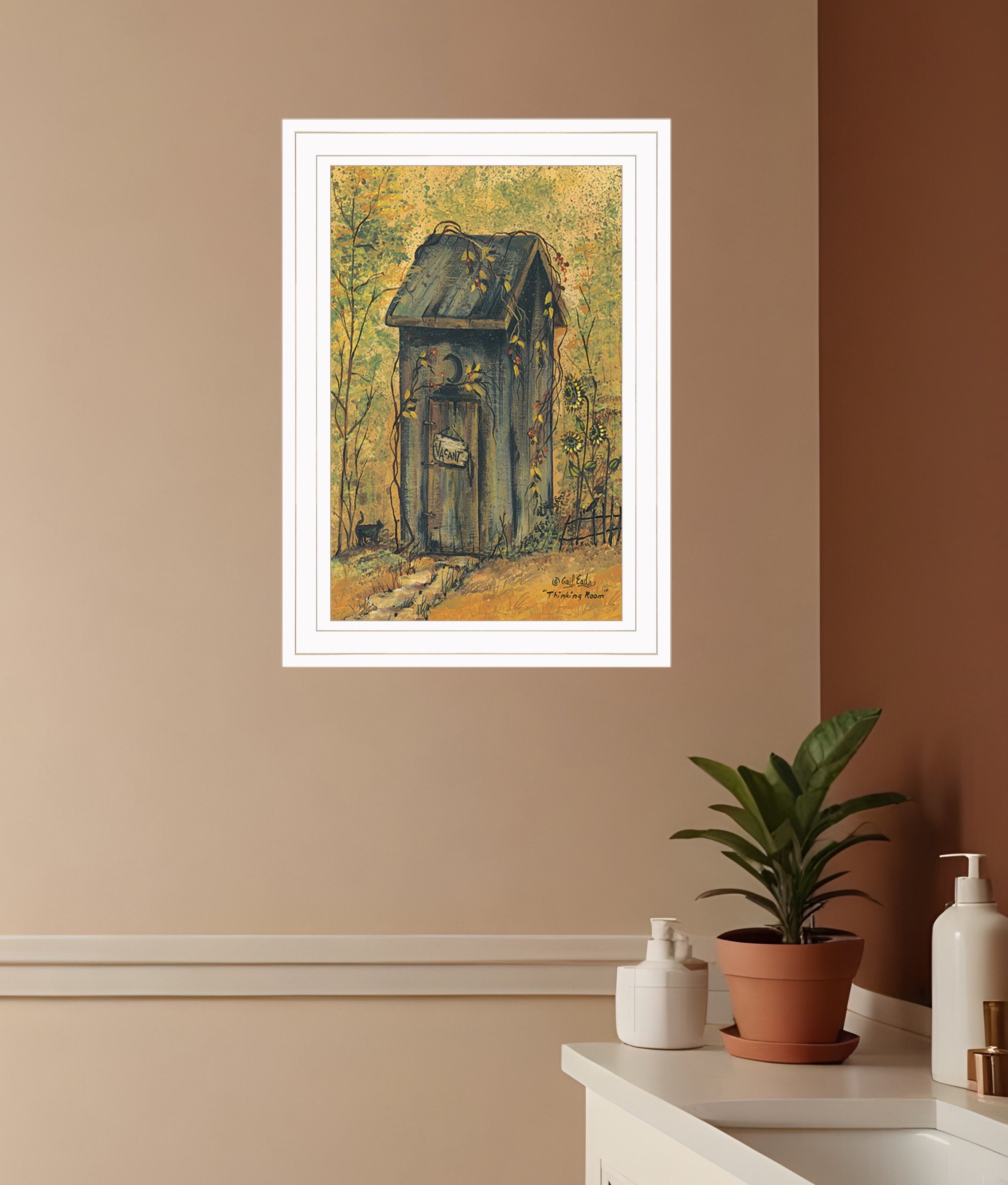 Bring some sizzle to your space with this eye-catching thinking room 1 white framed print wall art. This print is a visual artistic expression that allows you to decorate your space in style. Reproduced for you on paper, this hanging decorative accent will be a trendy and fashionable way to dress your walls. Hang on your wall to add some up to date fashion and decoration. Instantly liven up your space with this art that brings color and dimension to your walls. 13-inch H x 11-inch W x 1-inch D