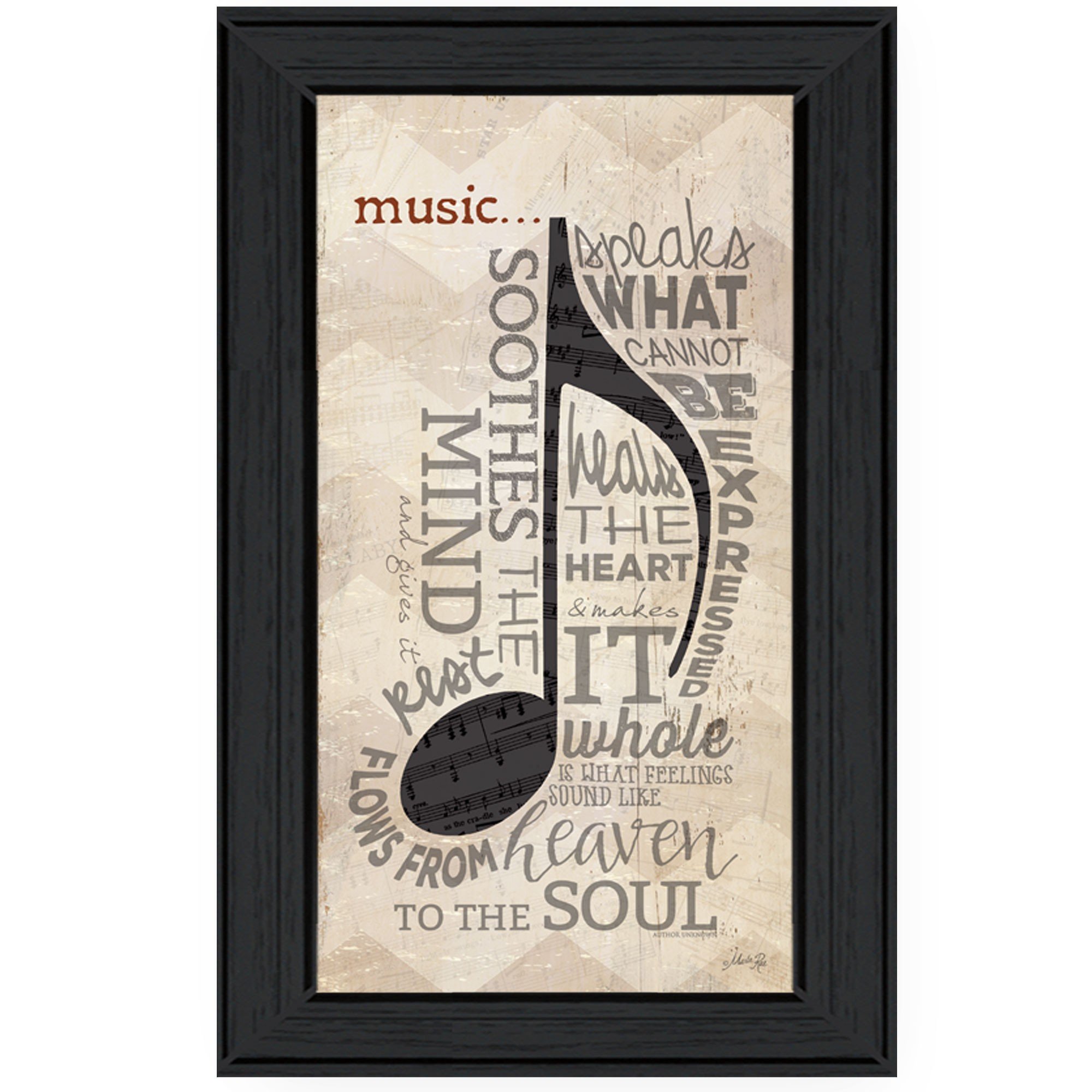 Add an air of fashion to your room and rejuvenate the space with this music 7 black framed print wall art. This print is a visual artistic expression that allows you to decorate your space in style. Reproduced for you on paper, this hanging decorative accent will be a trendy and fashionable way to dress your walls. Adding this hanging wall art to your space to make your room feel more finished and attractive. Utilize this opportunity to create a focal point in the room with this fabulous wall decor option. 21-inch H x 12-inch W x 1-inch D