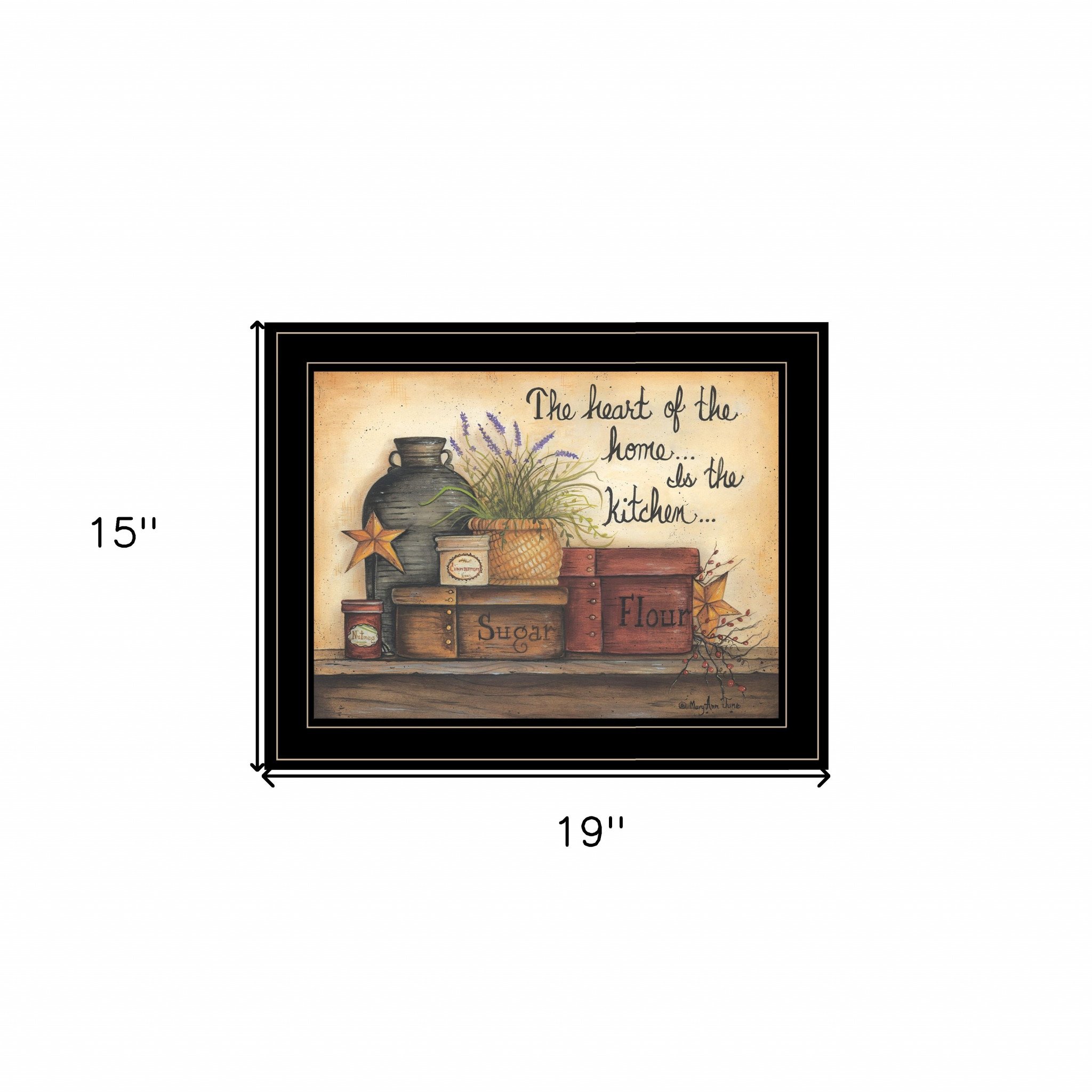 This heart of the home 8 black framed print kitchen wall art will add a beautiful decorative accent to your decor. This print is a visual artistic expression that allows you to decorate your space in style. Reproduced for you on paper, this hanging decorative accent will be a trendy and fashionable way to dress your walls. Hang on your wall to add some up to date fashion and decoration. Utilize this opportunity to create a focal point in the room with this fabulous wall decor option. 15-inch H x 19-inch W x 1-inch D