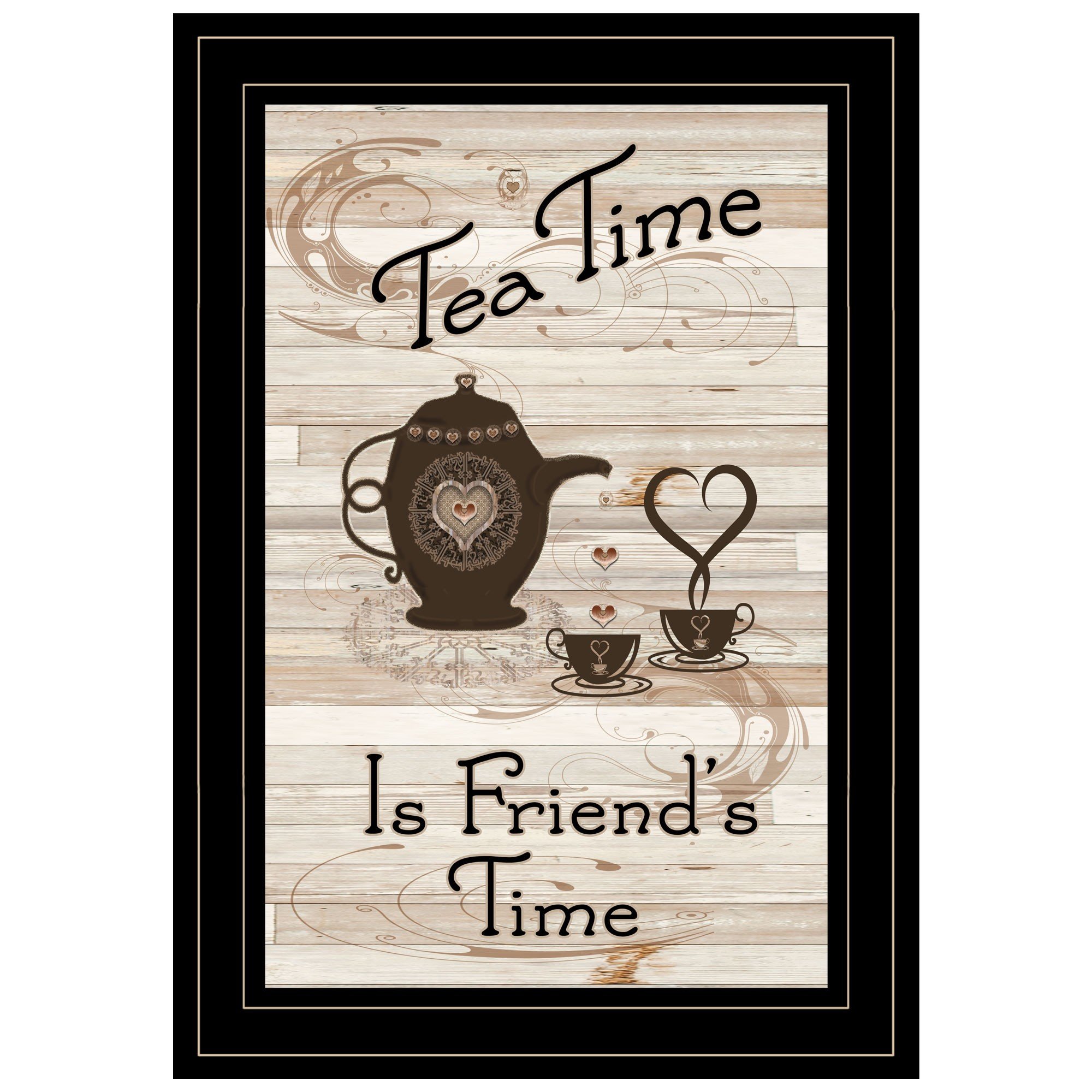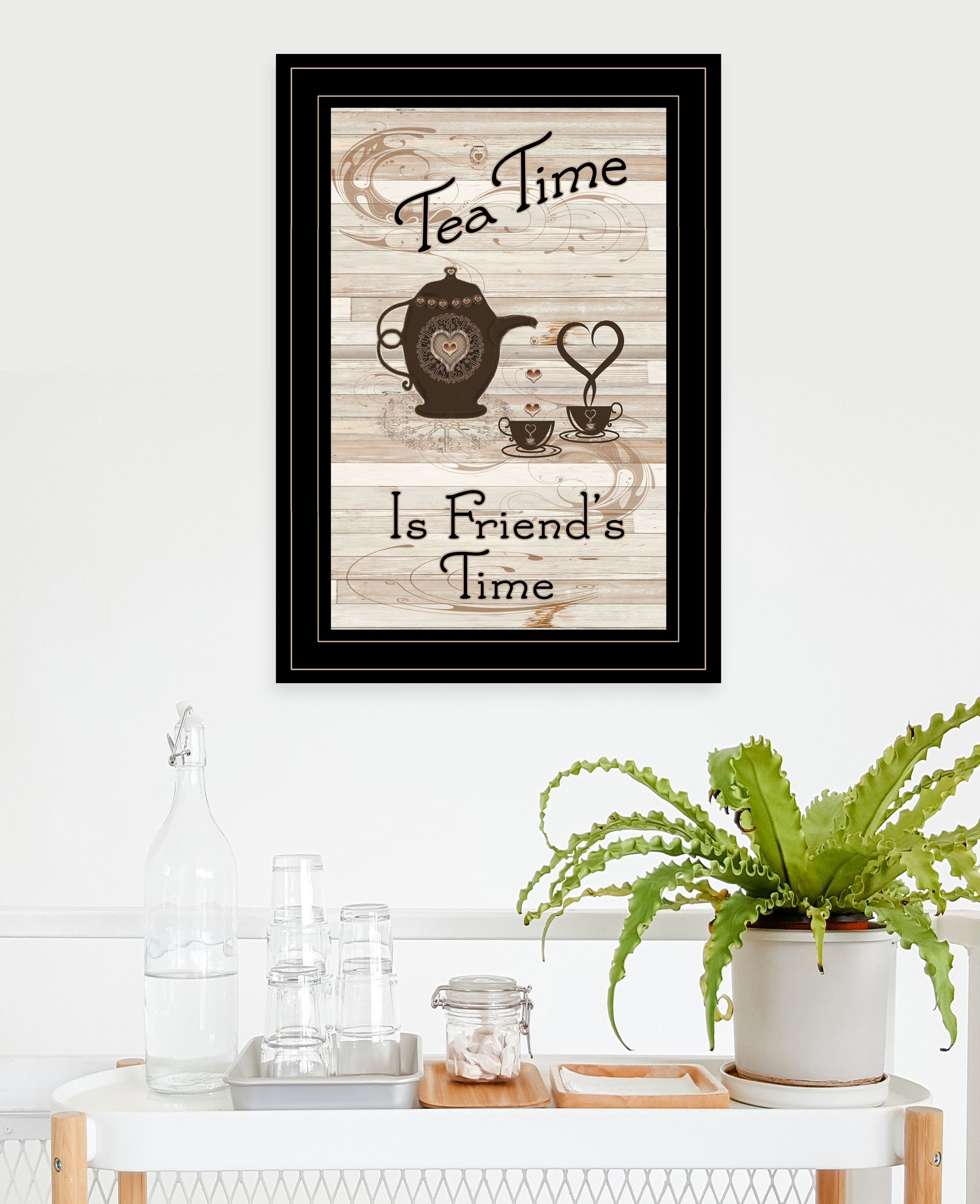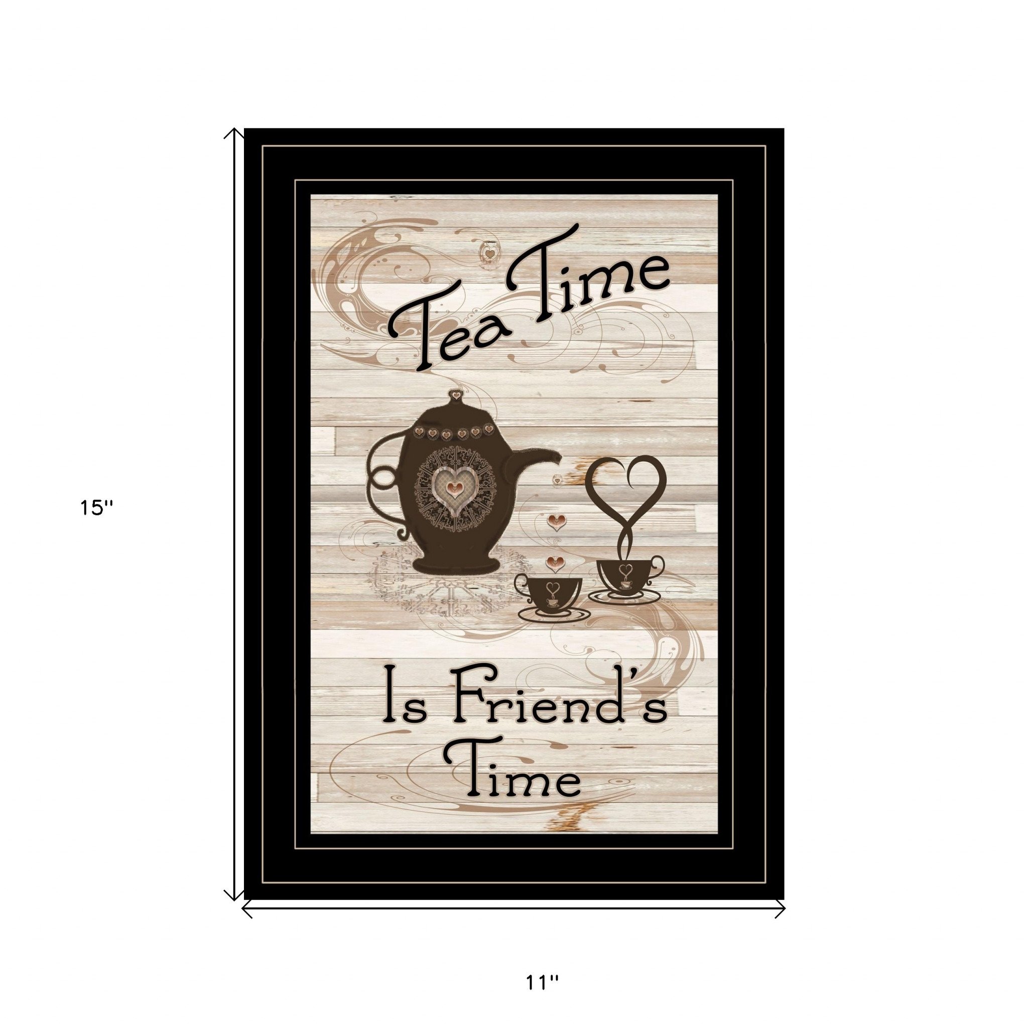The tea time is friends time 2 black framed print kitchen wall art is the perfect decorative accessory for your home. This print is a visual artistic expression that allows you to decorate your space in style. Reproduced for you on paper, this hanging decorative accent will be a trendy and fashionable way to dress your walls. Adding this hanging wall art to your space to make your room feel more finished and attractive. Instantly liven up your space with this art that brings color and dimension to your walls. 15-inch H x 11-inch W x 1-inch D