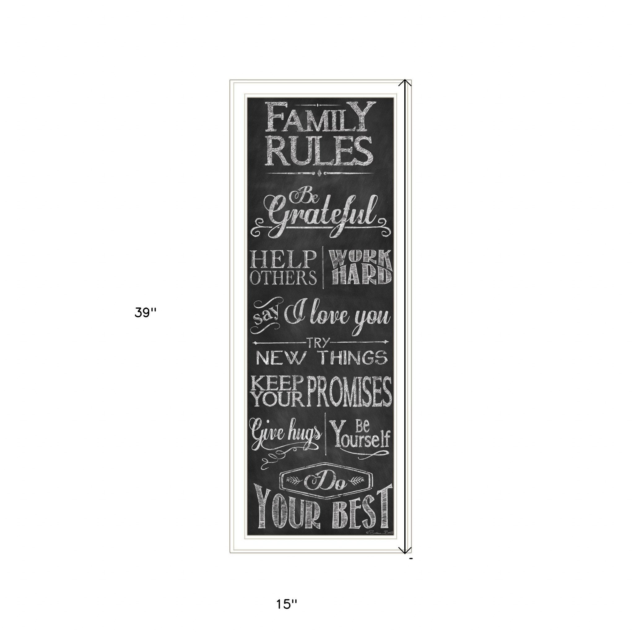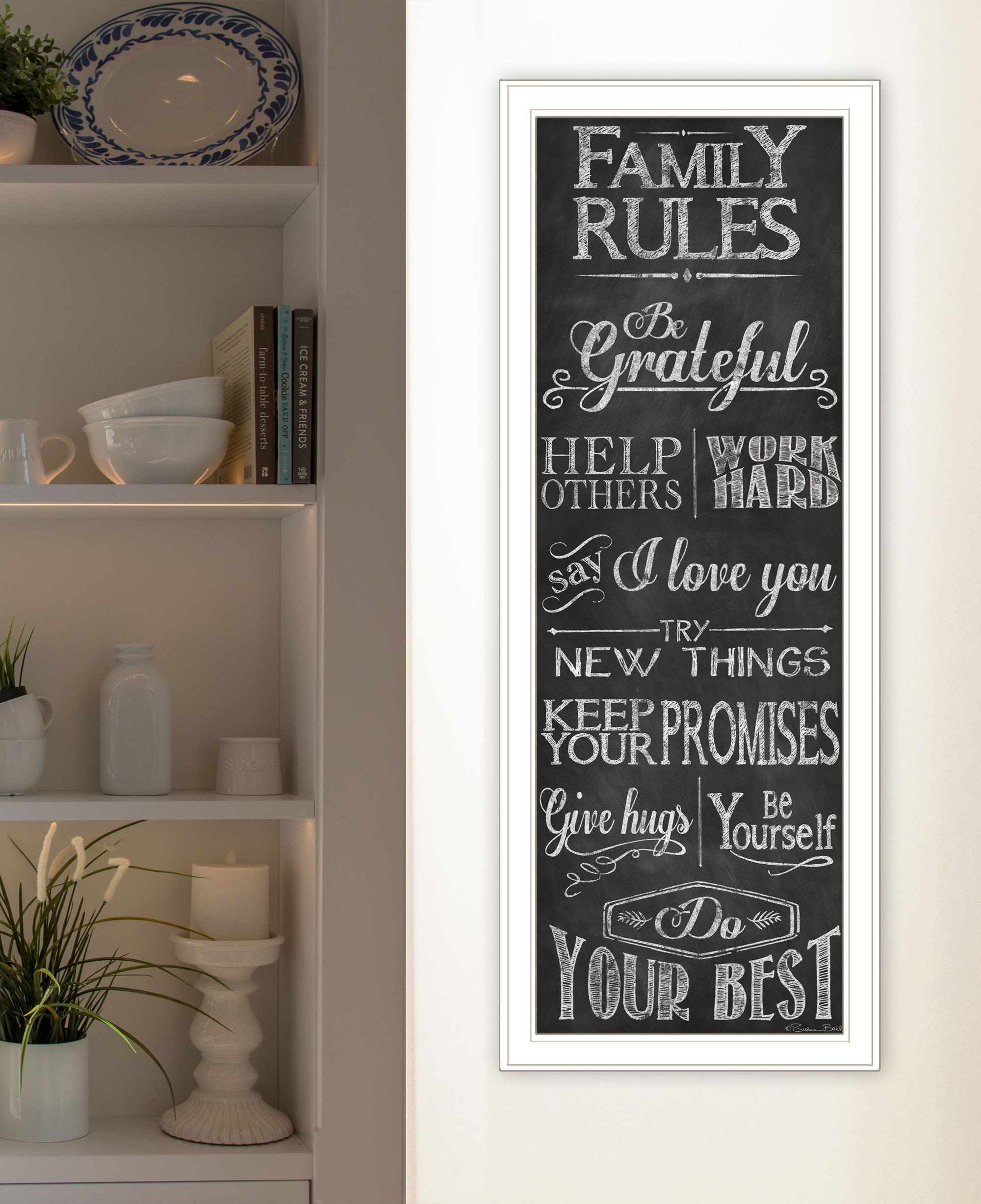 Add an air of fashion to your room and rejuvenate the space with this family rules 2 white framed print wall art. This print is a visual artistic expression that allows you to decorate your space in style. Reproduced for you on paper, this hanging decorative accent will be a trendy and fashionable way to dress your walls. Adding this hanging wall art to your space to make your room feel more finished and attractive. Utilize this opportunity to create a focal point in the room with this fabulous wall decor option. 39-inch H x 15-inch W x 1-inch D